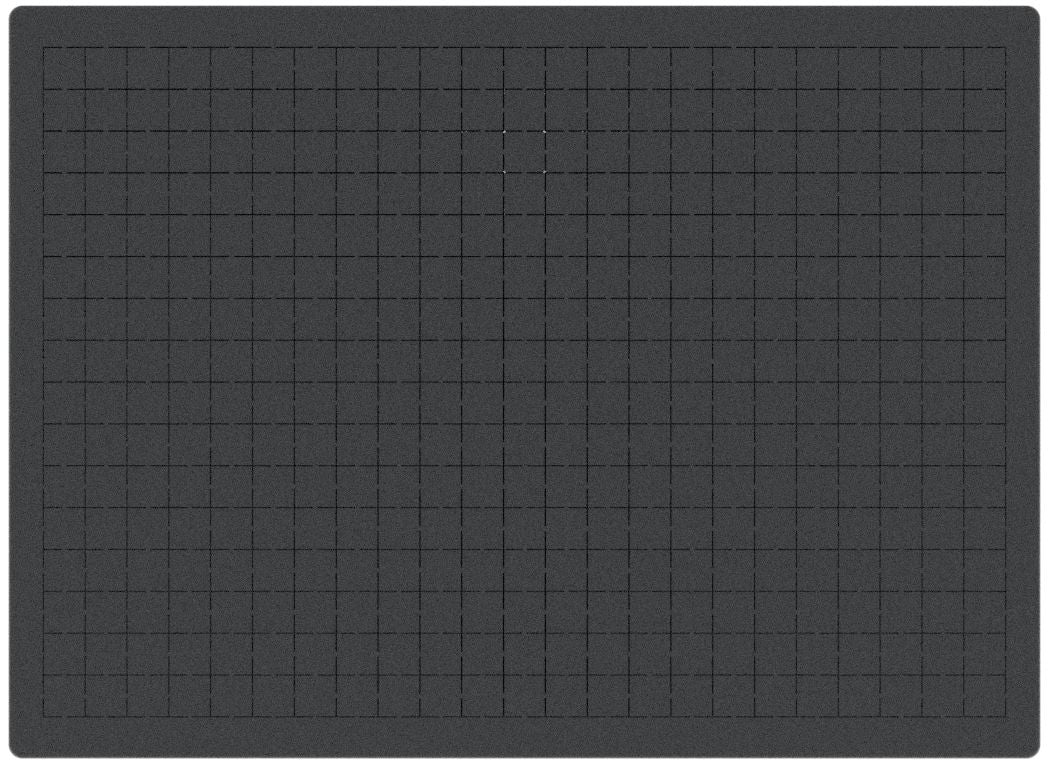 This foam insert set is designed for Auer Packaging Euro containers EG 43/12 HG, ED 43/12 HG and EDP 43/12 HG (40 x 30 cm footprint) and provides customizable protection for miniatures, game components, tools or accessories during storage and transport.