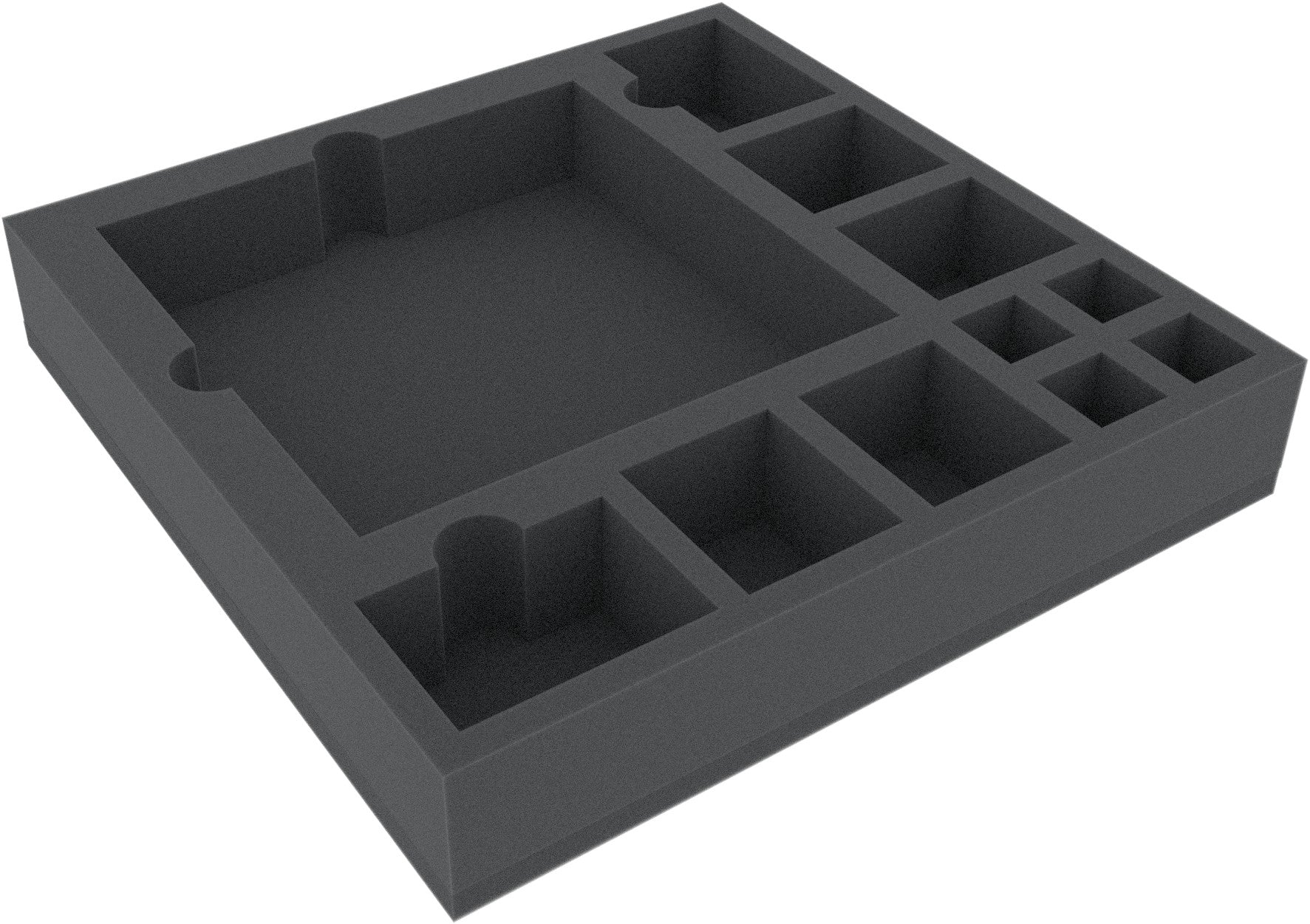 Foam tray with 11 compartments for many original board game boxes. The 11 different compartments own yourself for everything imaginable game material.