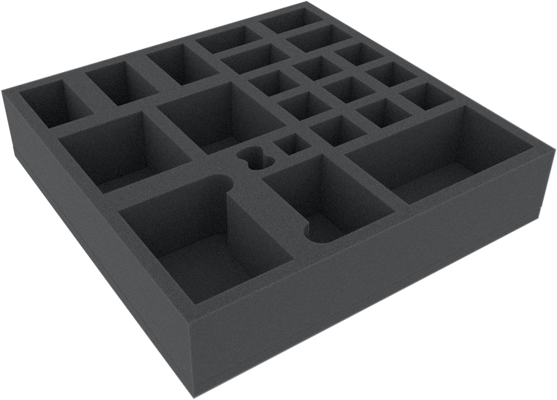 Foam tray with 23 slots for many original boardgame boxes. The 23 different slot own yourself for everything imaginable game material.