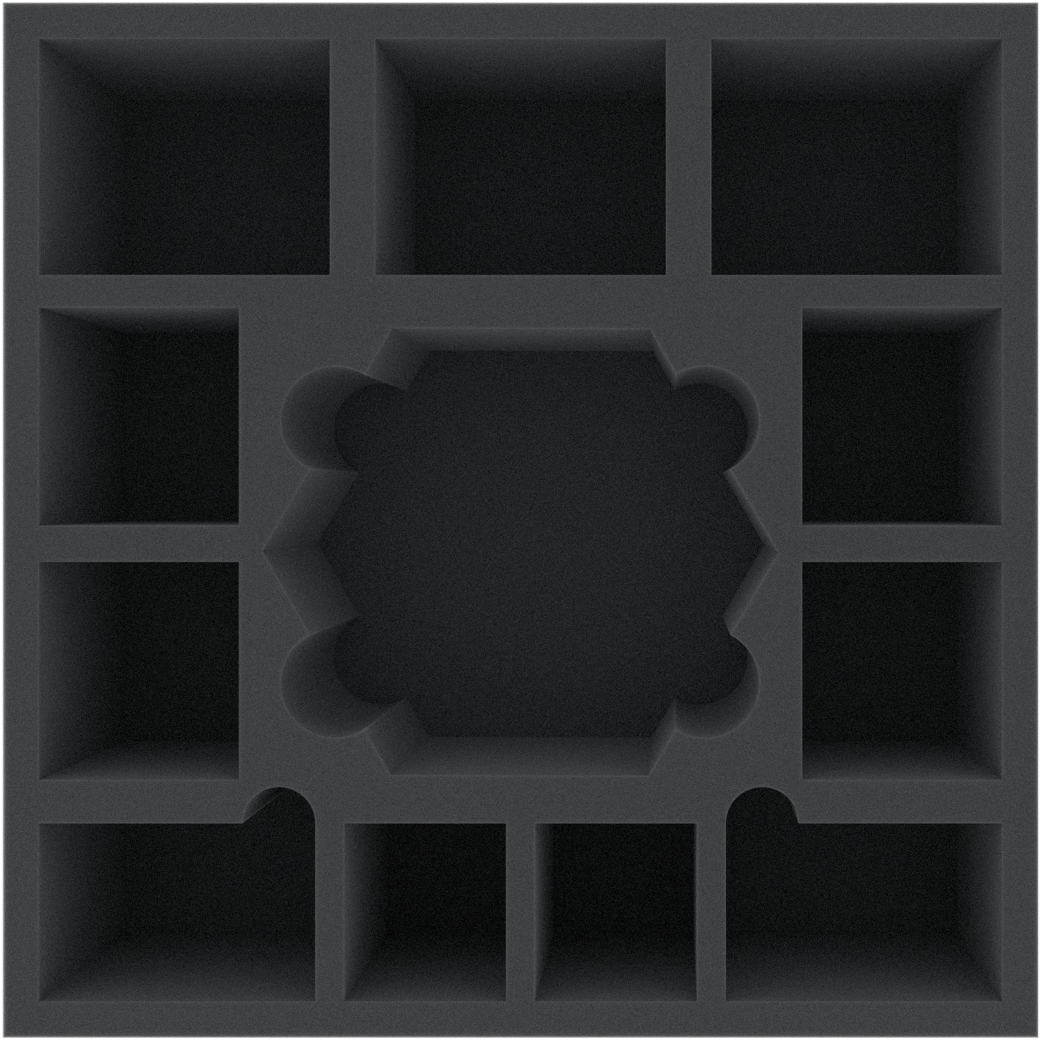 AFMEMQ085BO 285 mm x 285 mm x 85 mm foam tray with 12 compartments for board game boxes