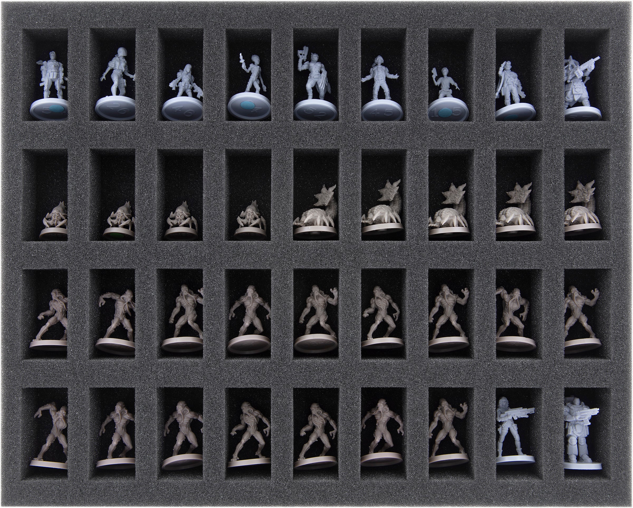 • 1 Full-Size foam tray with 32 compartments for miniatures (FSMEDS040BO)