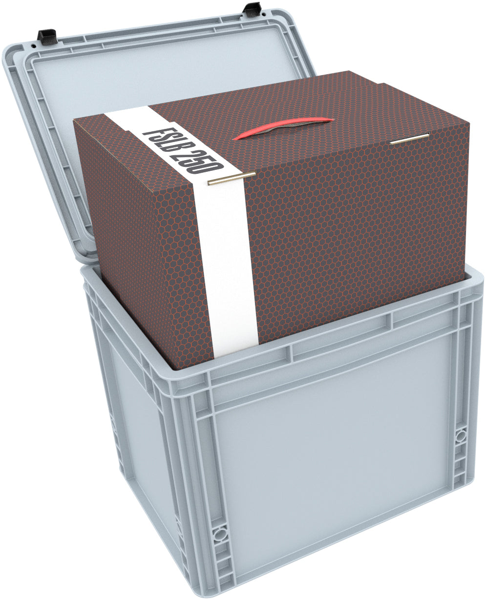 The Storage Box FSLB250 offers space for all Feldherr Half-Size and Full-Size foam trays up to a maximum height of 250 mm.