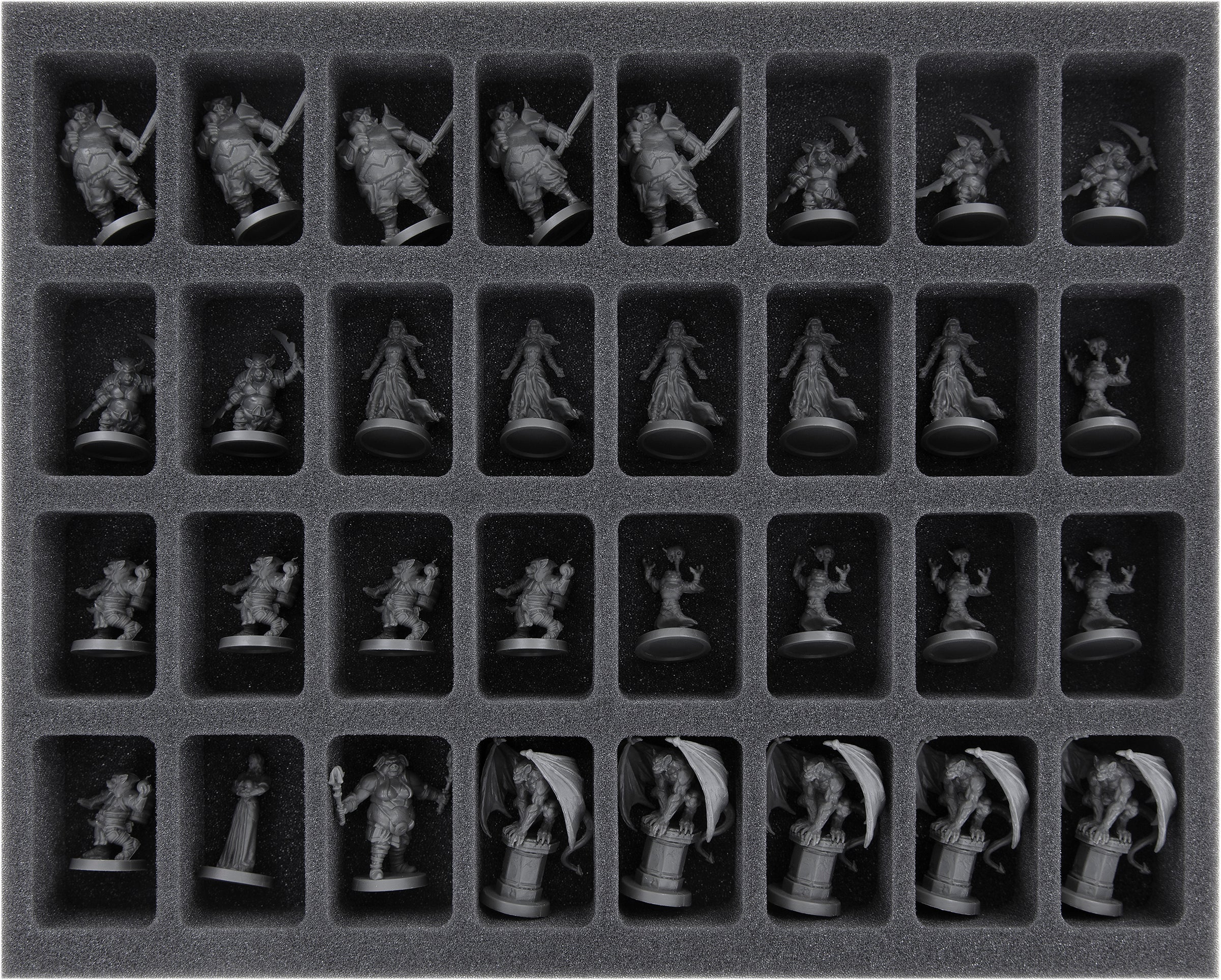 • 1 Full-Size foam tray with 32 compartments for miniatures (FSMEDS040BO)