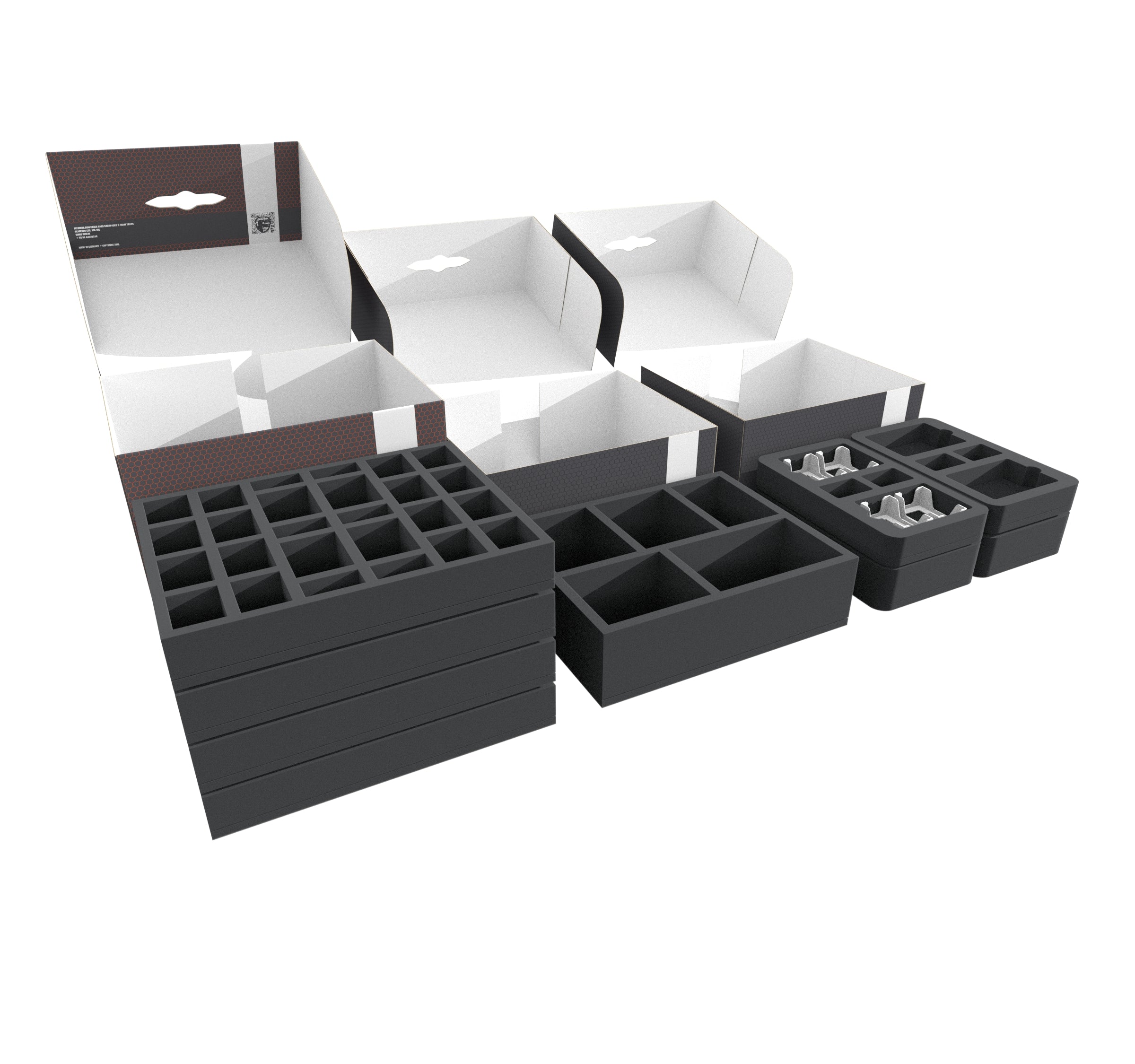 - 1 Full-Size foam tray with 5 compartments + 2 plastic token holders for dashboards and small-sized game material (FS050I031BO + 2x 62800)