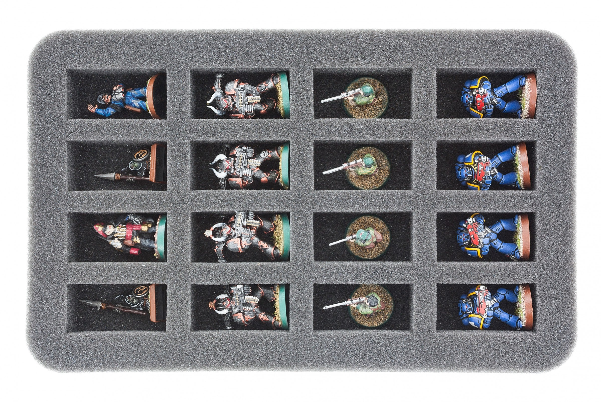 • 2 x 35 mm foam trays stores up to 16 miniatures each