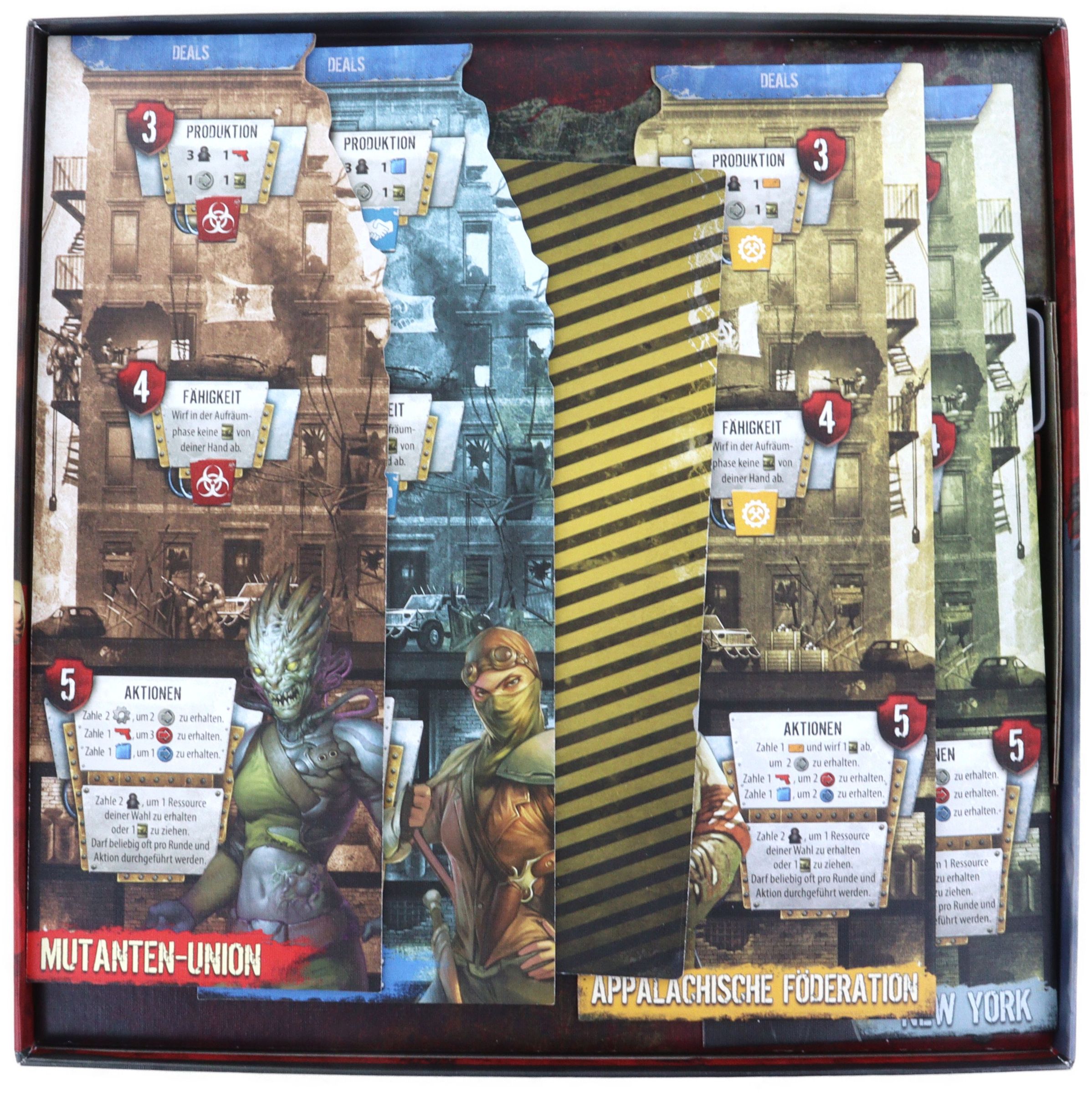 The inserts also give the game table the necessary structure. With them, you always have the game in view and do not have to search long for the right tokens before you raze a place.