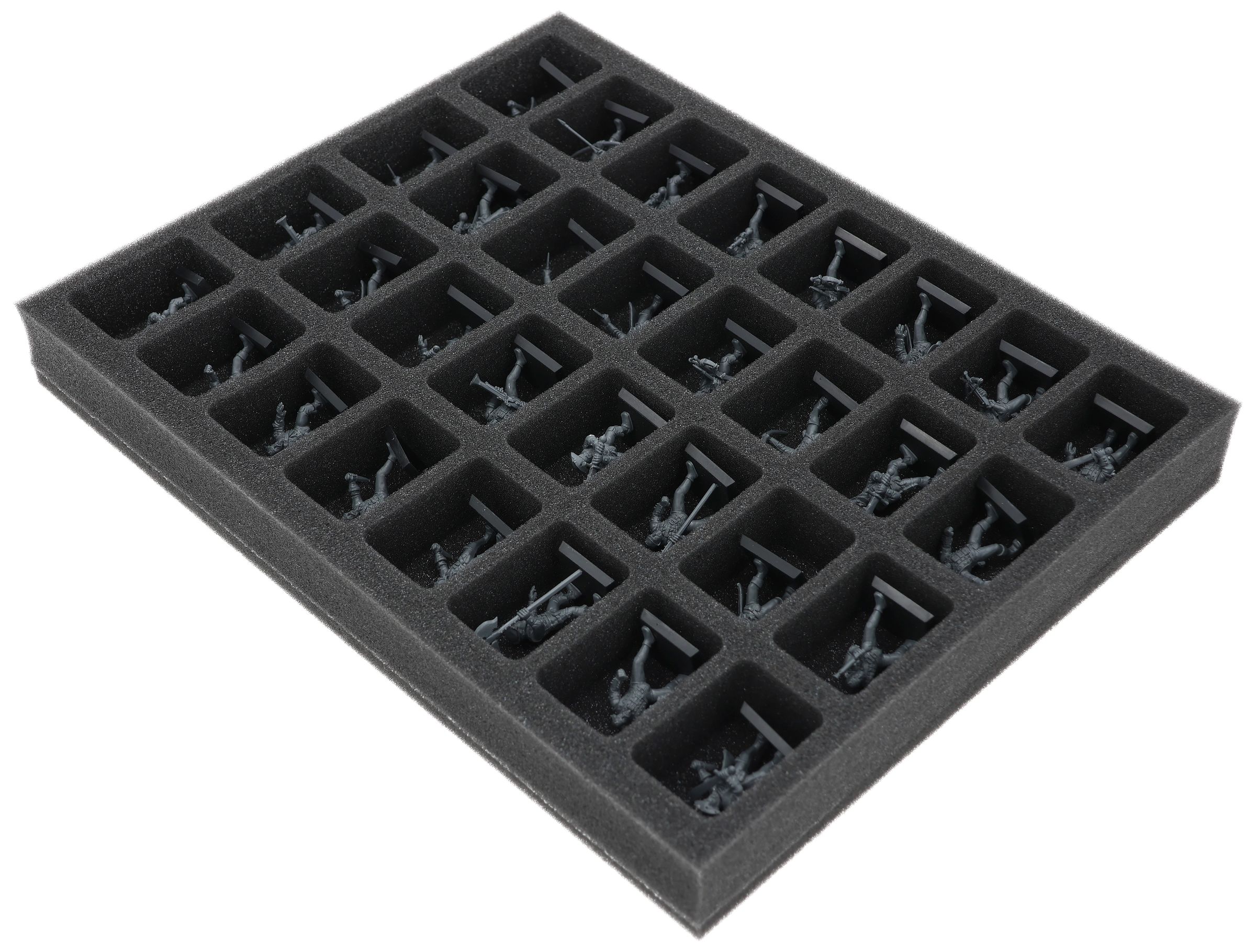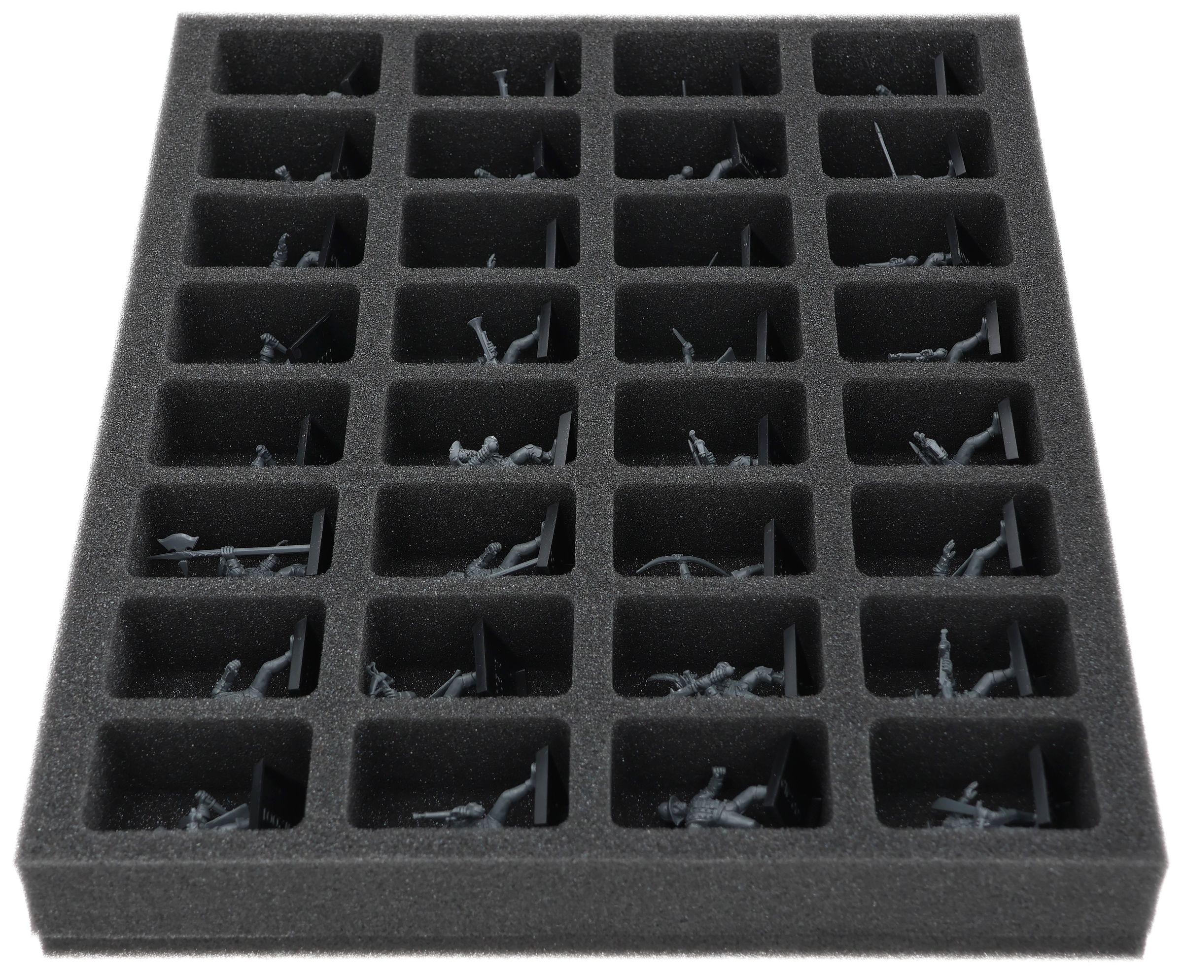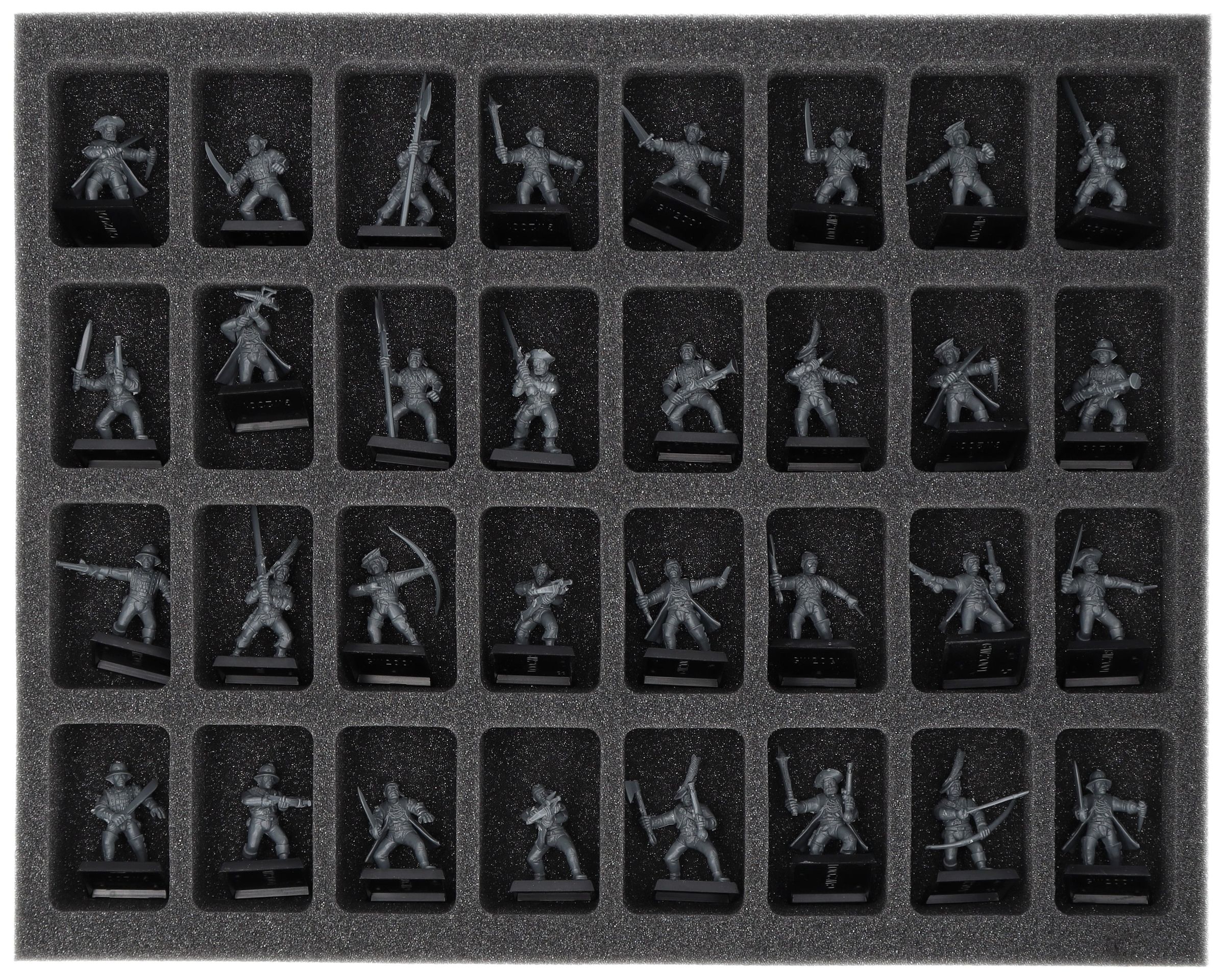 On this Feldherr foam tray you have space for up to 32 miniatures of your Empire of man collection. The insert is especially suitable for storing the Free Company Militia and similar sized models.