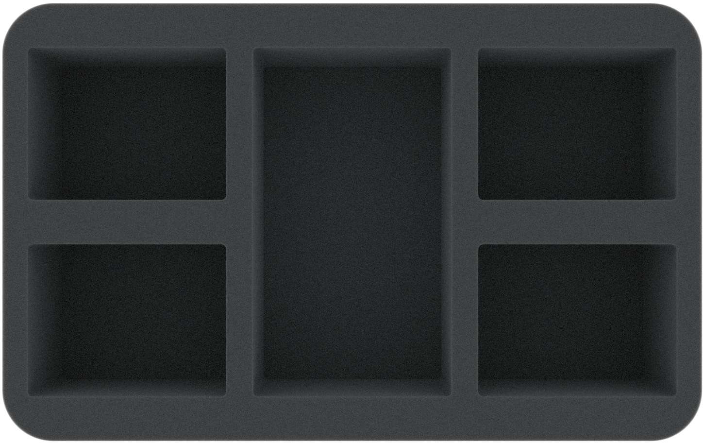 This foam tray has 5 compartments for the safe and orderly storage of large and medium-sized "Shadows of Brimstone" miniatures. The fine-pored foam provides reliable protection against damage – delicate parts stay intact, the color of painted models remains unharmed.