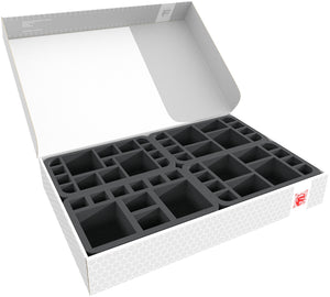 Whether you're playing a compact Kill Team-like squad or a large Chaos Daemons army: modular boxes, magnetic trays and organized accessory compartments keep your collection organized and protected.