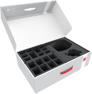 Whether you're playing a compact Kill Team-like squad or a large Chaos Daemons army: modular boxes, magnetic trays and organized accessory compartments keep your collection organized and protected.