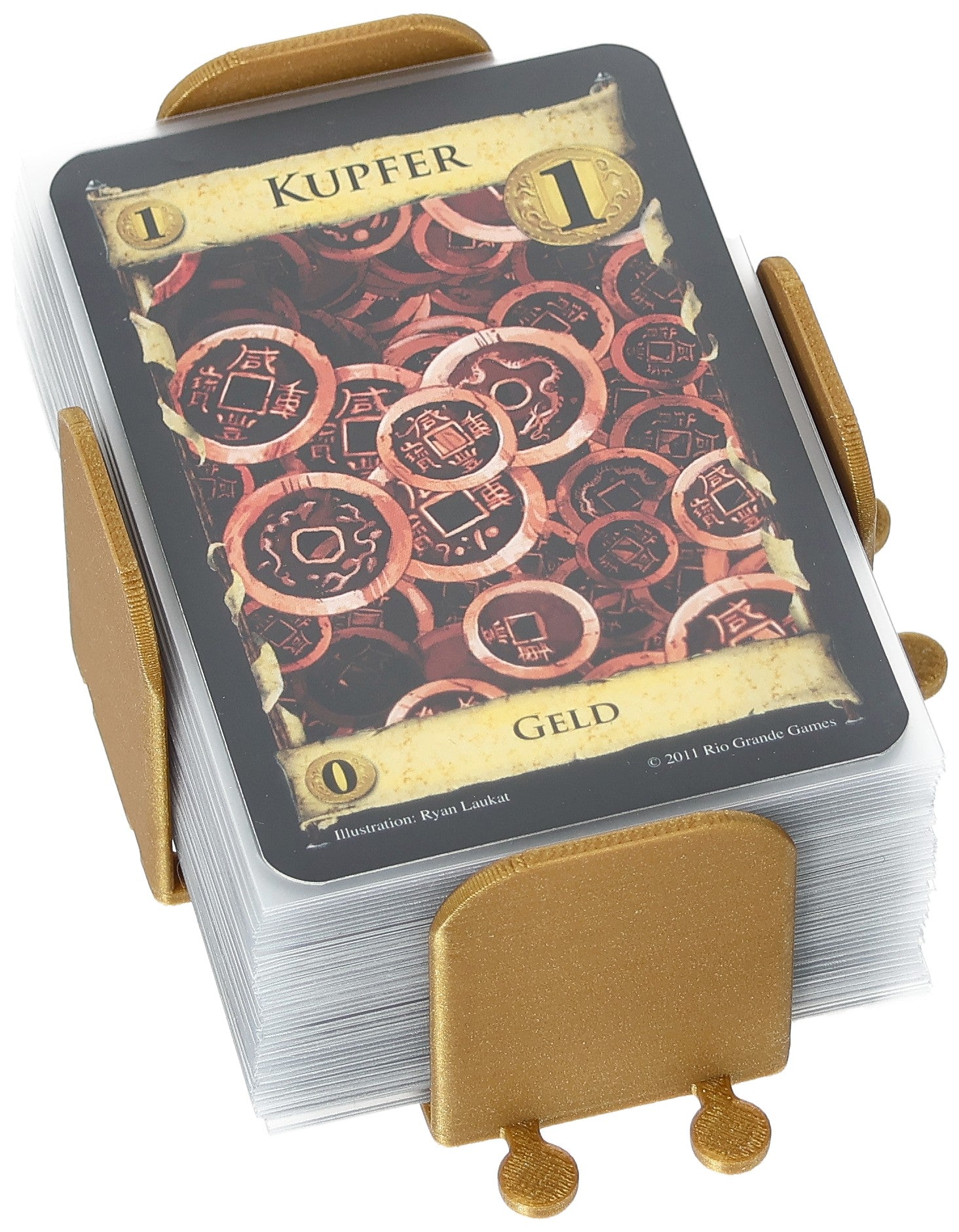 • The golden color of the card holder resembles the gold of the basic Treasure cards and improves the overview.
