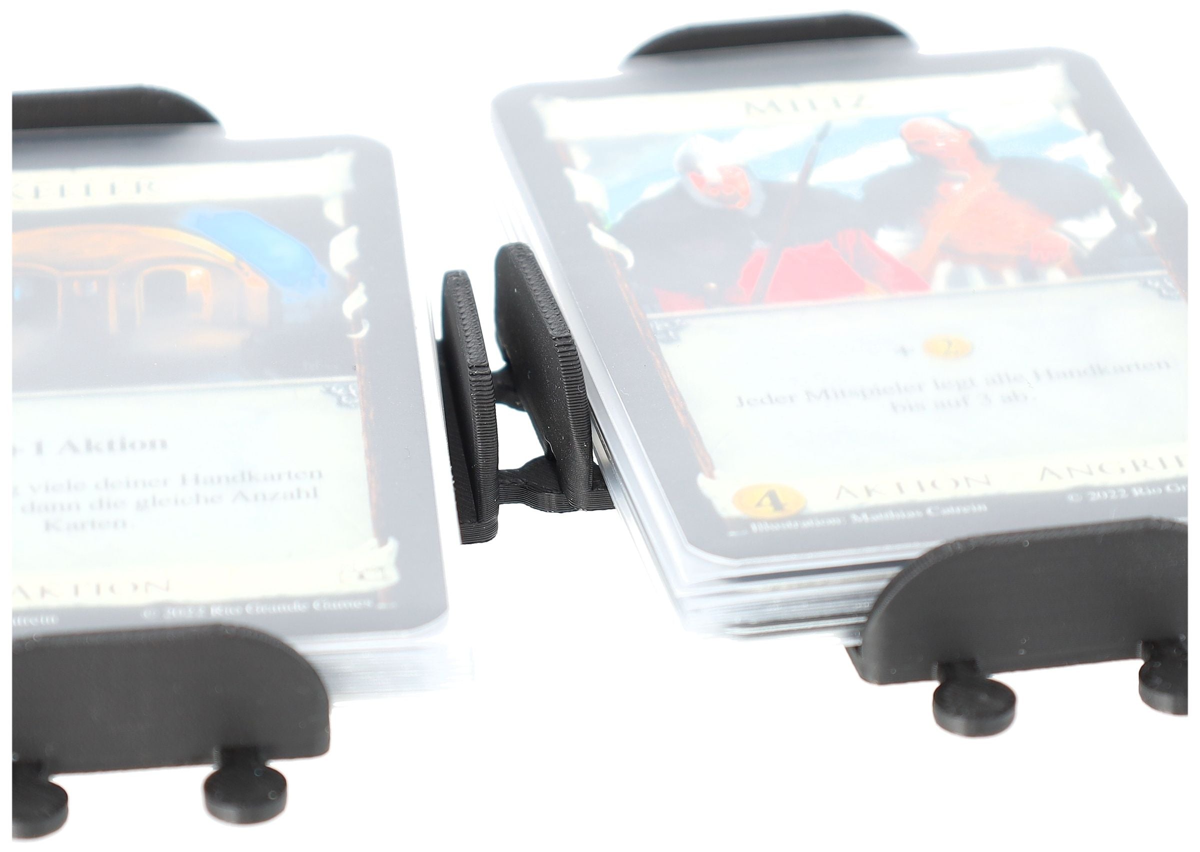 • Combine card deck holders with the clever plug-in system into one big tray. This way, you increase the stability of the staples and give the tabletop a more structured look.
