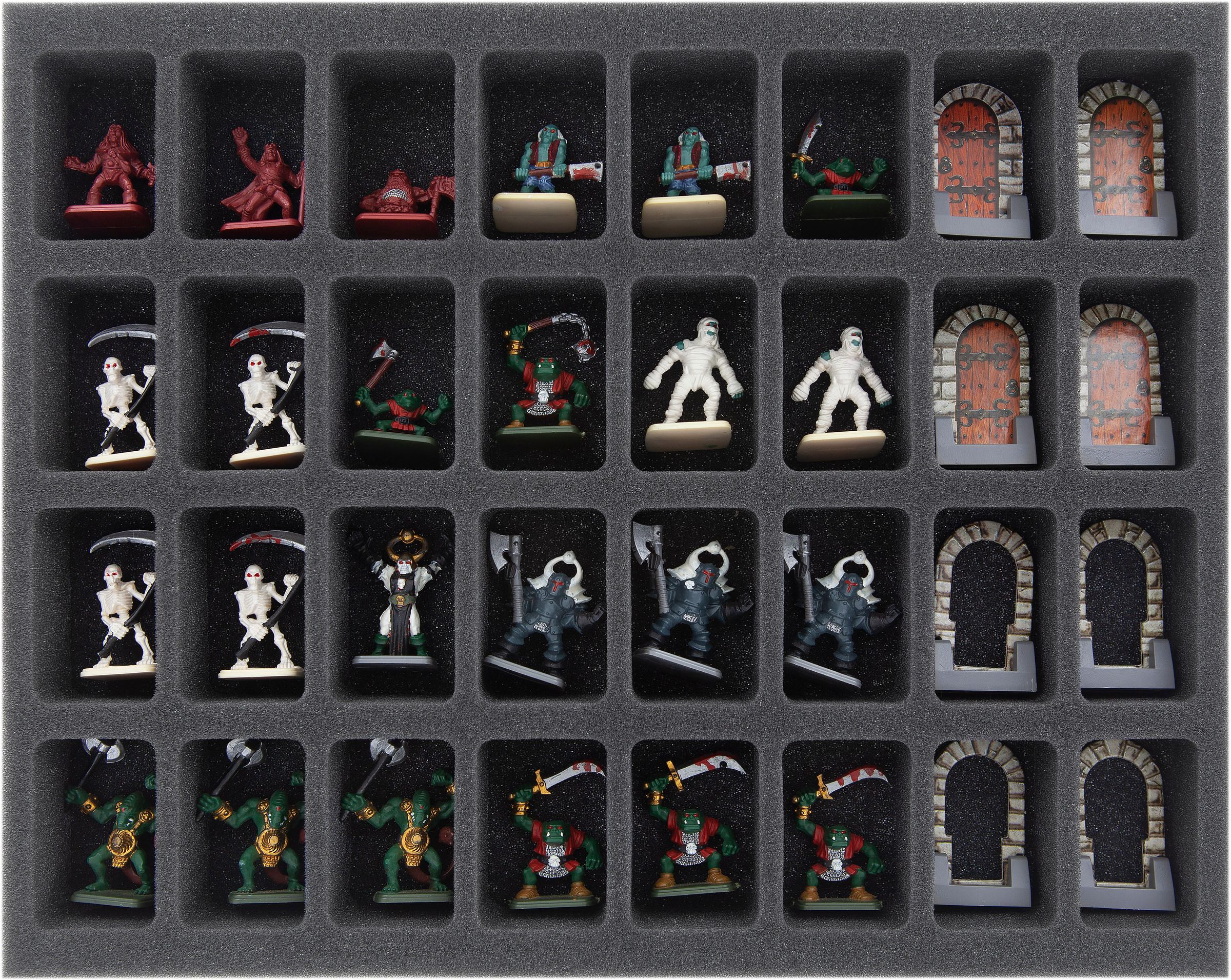 • 2 Full-Size foam trays each with 32 compartments for miniatures and doors (FSMEDS040BO)