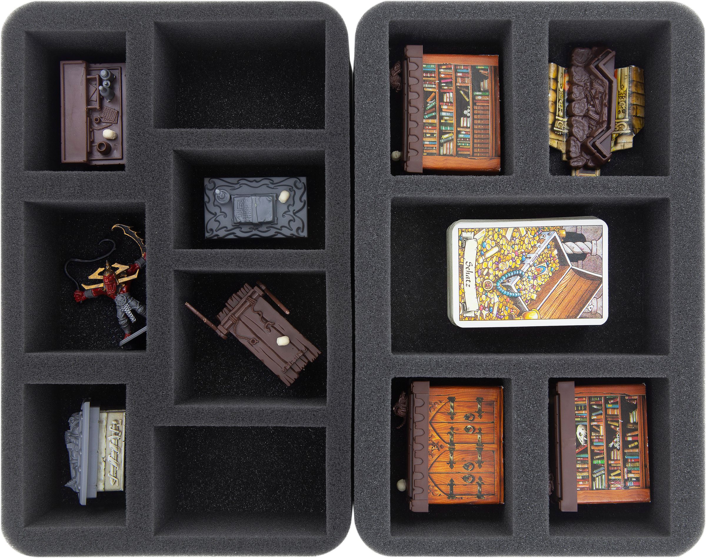 • 1 Half-Size foam tray with 5 compartments for miniatures and game material (HSMEJK050BO)
