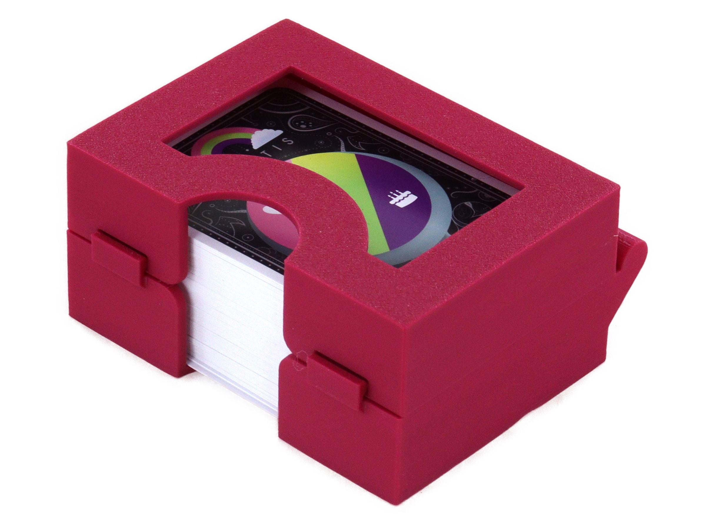 - Space-saving and sturdy, the card box easily fits in your jacket pocket. Everything stays in place thanks to the locking system.