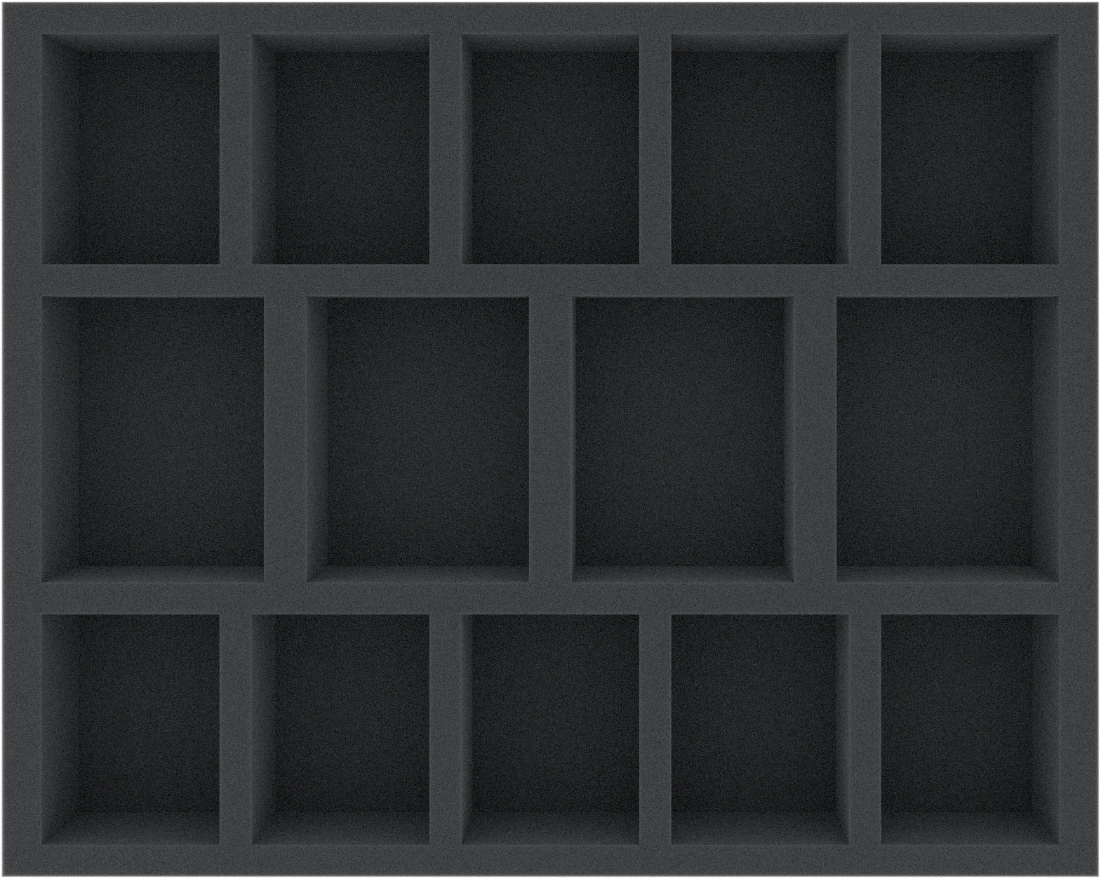 This Feldherr foam tray has 14 compartments for the clear and safe storage of miniatures in scale 1:56 (28 mm). Ideal for larger and bulkier tabletop and board game miniatures in 28 mm scale on bases up to 40 mm.