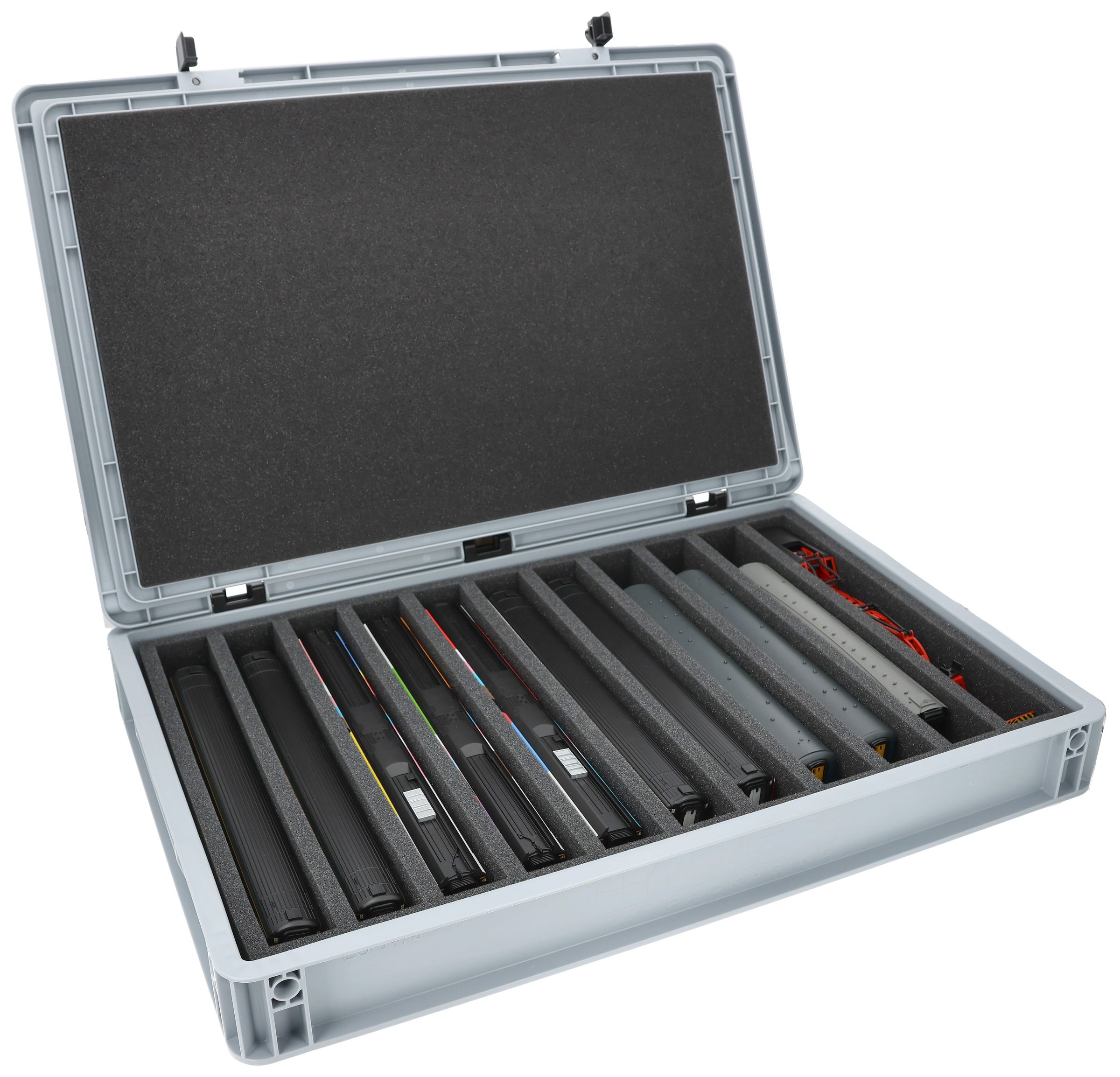 The fine-pored foam reliably protects sensitive details, paintwork and attachments on your models from scratches and damage. The sturdy Eurobox made of shock-resistant plastic provides additional protection from external influences. A simple hinge system with two locks keeps the box securely closed and protects the contents from dust and dirt.