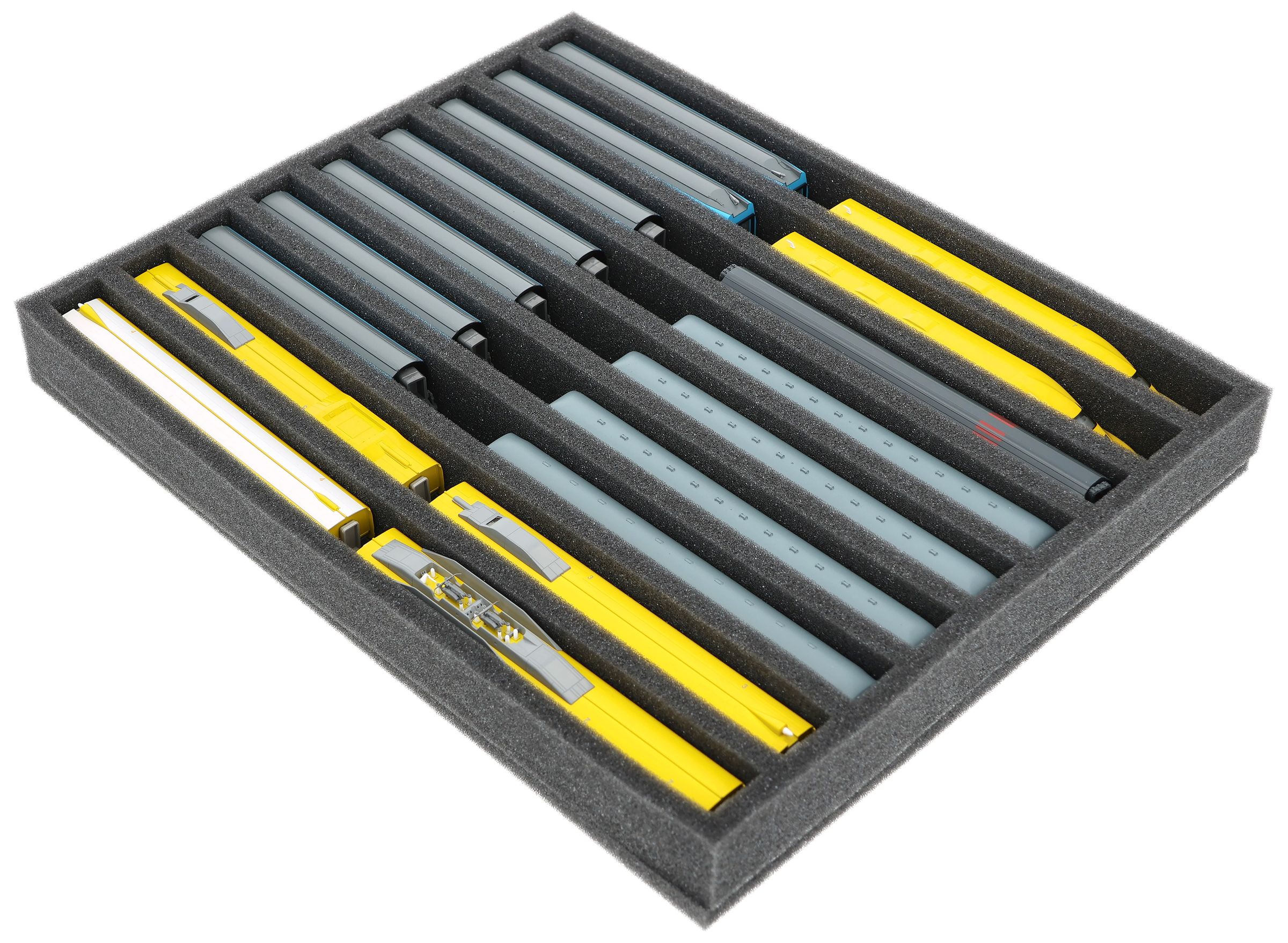 FS040A001 Foam inlay N-gauge - vertical - 9 slots for model railway locomotives, wagons and vehicles
