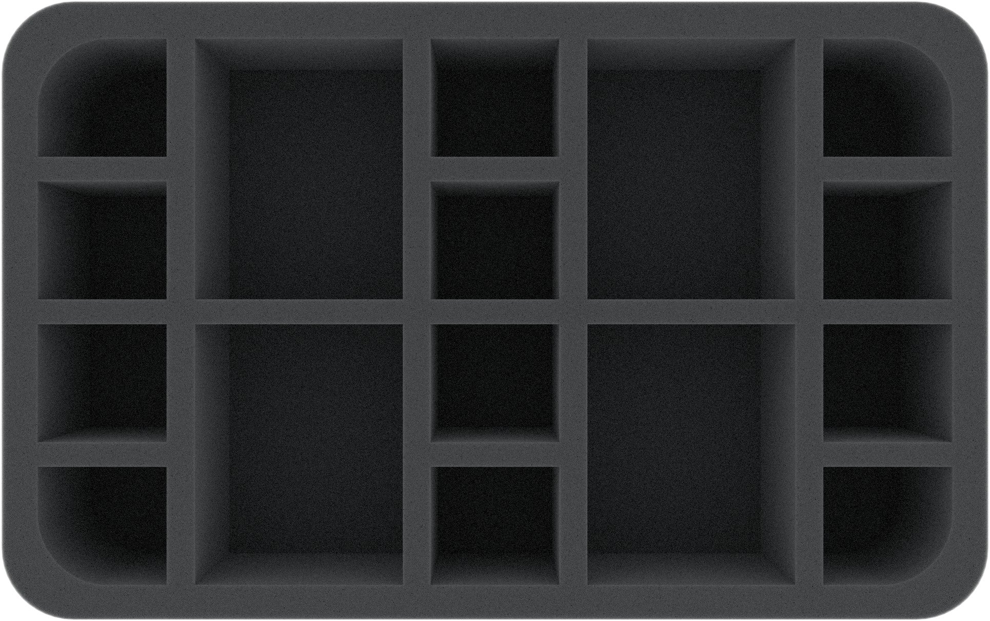 Perfect for 12 Characters on Tags and 4 big miniatures. This foam tray has 16 compartments - each is 50 mm deep.