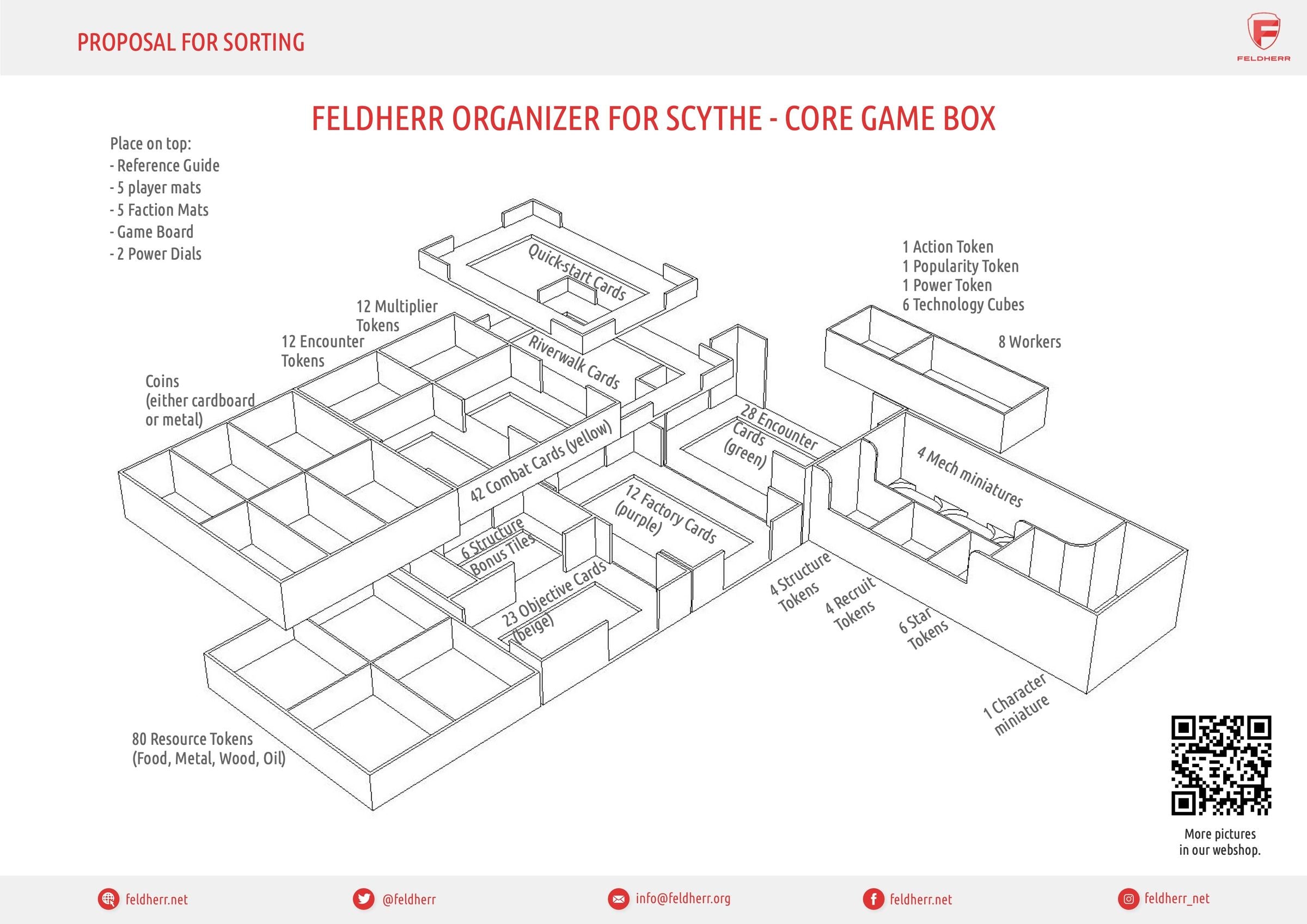 - The Organizer provides room for all miniatures and the entire game materials from the "Scythe" core game.