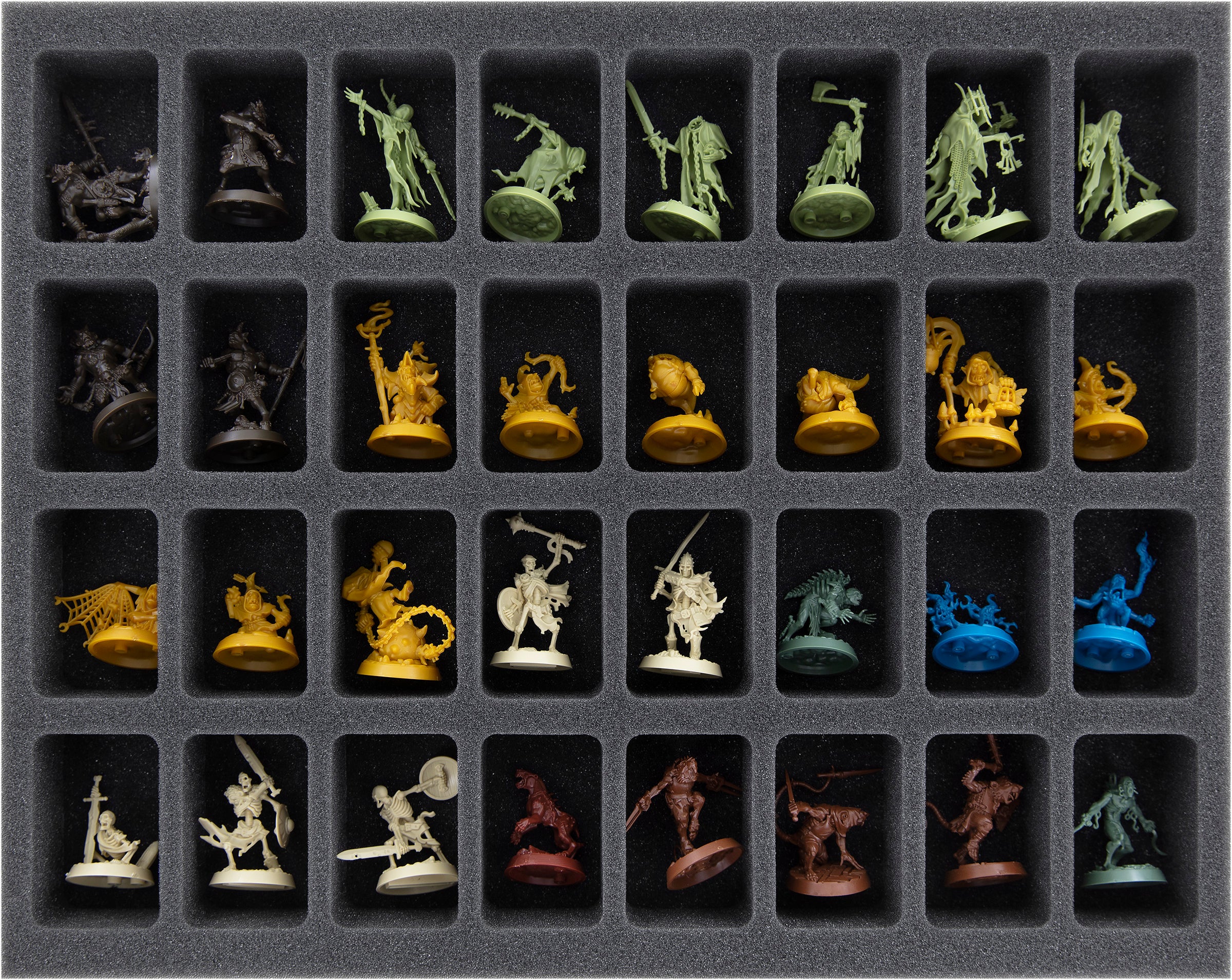 - 1 Full-Size foam tray for 32 small miniatures (FSMEDS040BO)