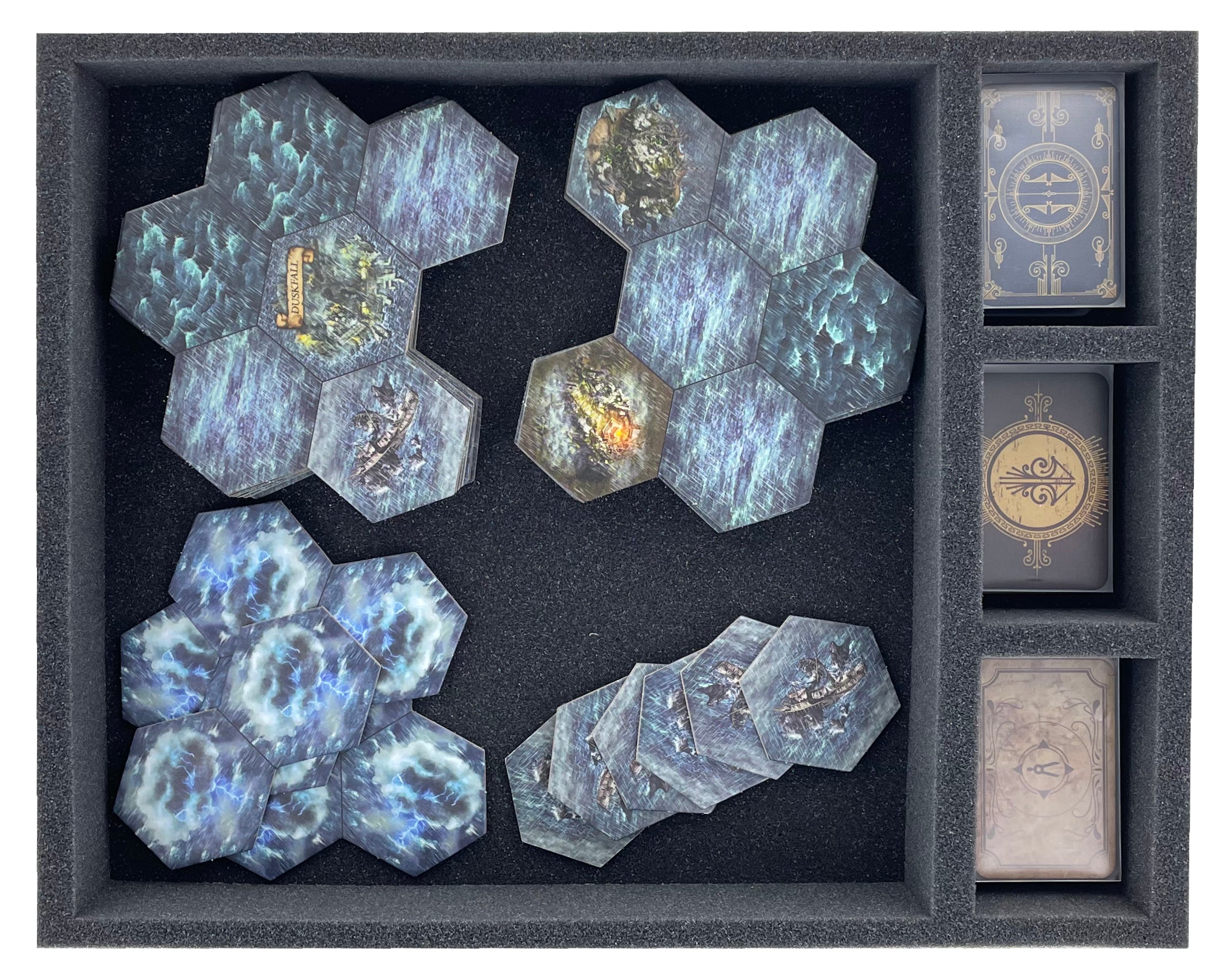 • 1 Full-Size foam tray with 4 compartments for small cards + game tiles (FS050I031BO)