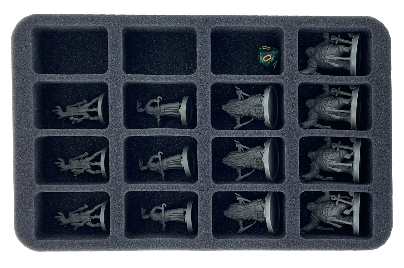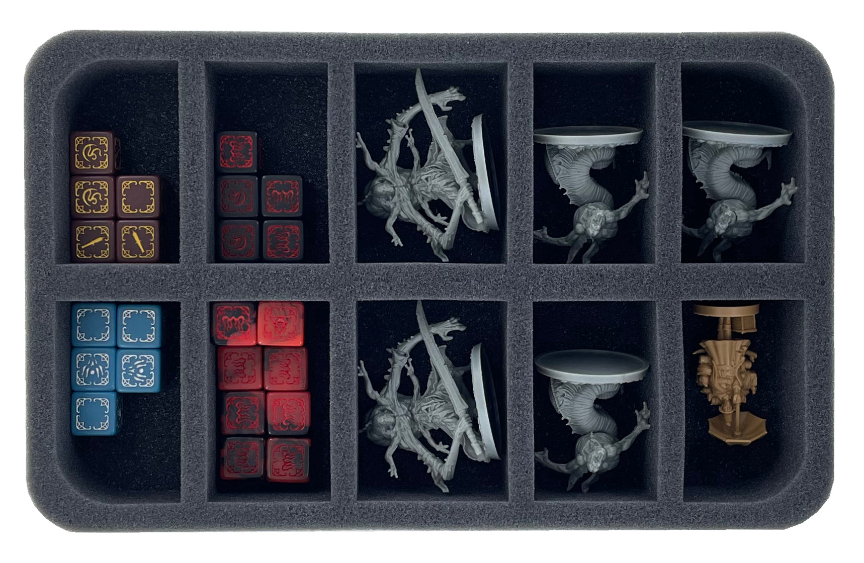 • 1 Half-Size foam tray with ten compartments for miniatures like Abhorrent, Wyrm, Merchant Crew + Dice (HSBE050BO)