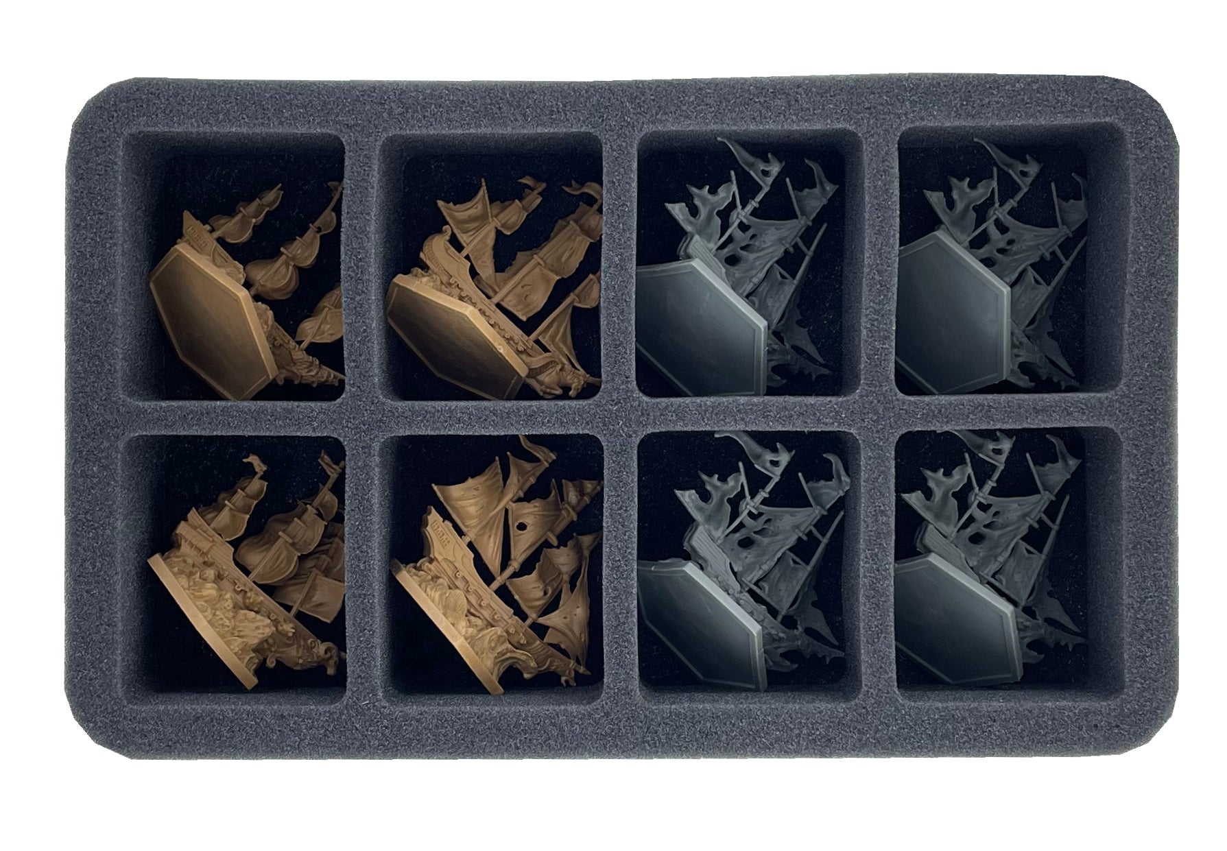 • 1 Half-Size foam tray with 8 compartments for ship miniatures like Unique Player Ships and Enemy Ships (HS060BF02BO)