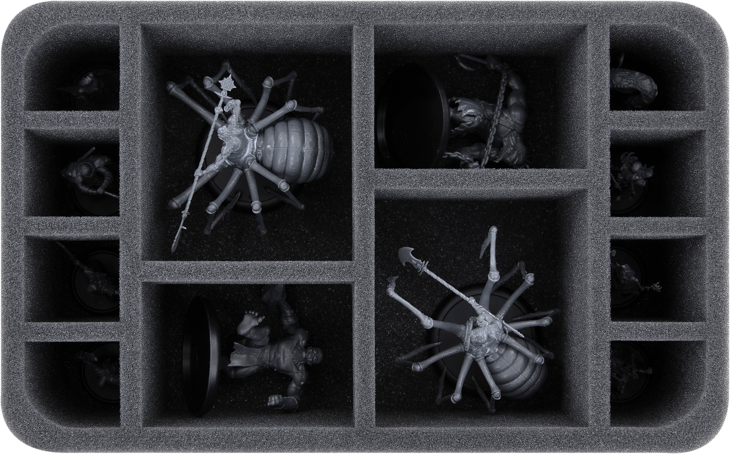 Custom-fit compartments of soft foam reliably protect your miniatures from damage and ensure that your painted units arrive safely at the tabletop without scratches.