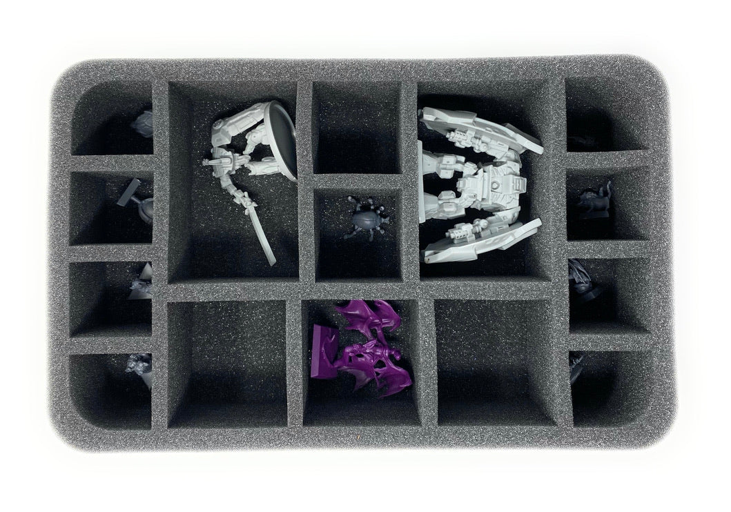 - 1 Half-Size foam tray with 16 compartments for miniatures like Small Breeds, Medium Oni and Large Oni (HS040BF05BO)