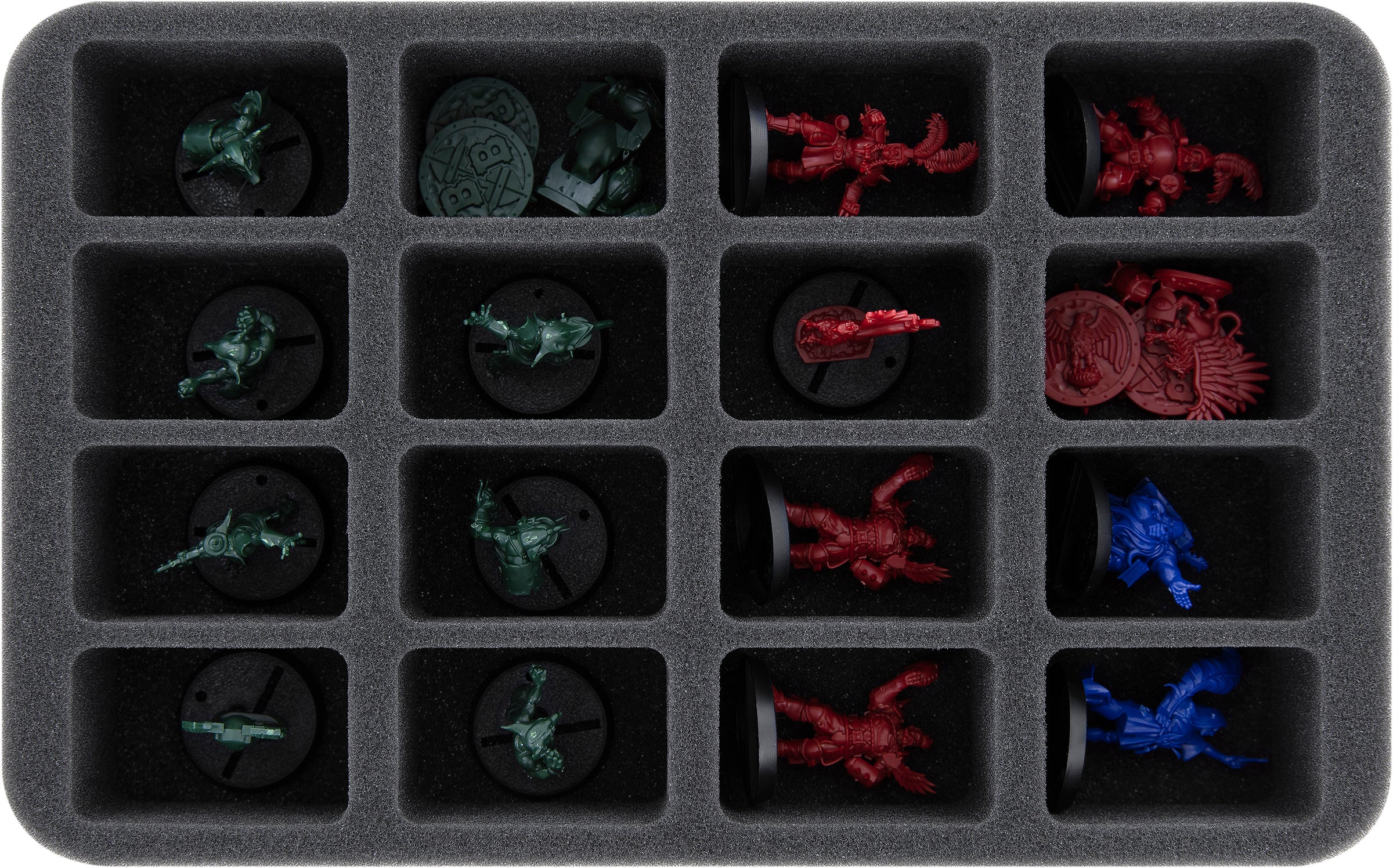 Each model gets its own custom-fit compartment. This ensures that the figures do not slide around or bump into each other during transport. The soft foam not only protects the sensitive details of the figures. The colors of the painted miniatures are also spared from abrasion and scratches.
