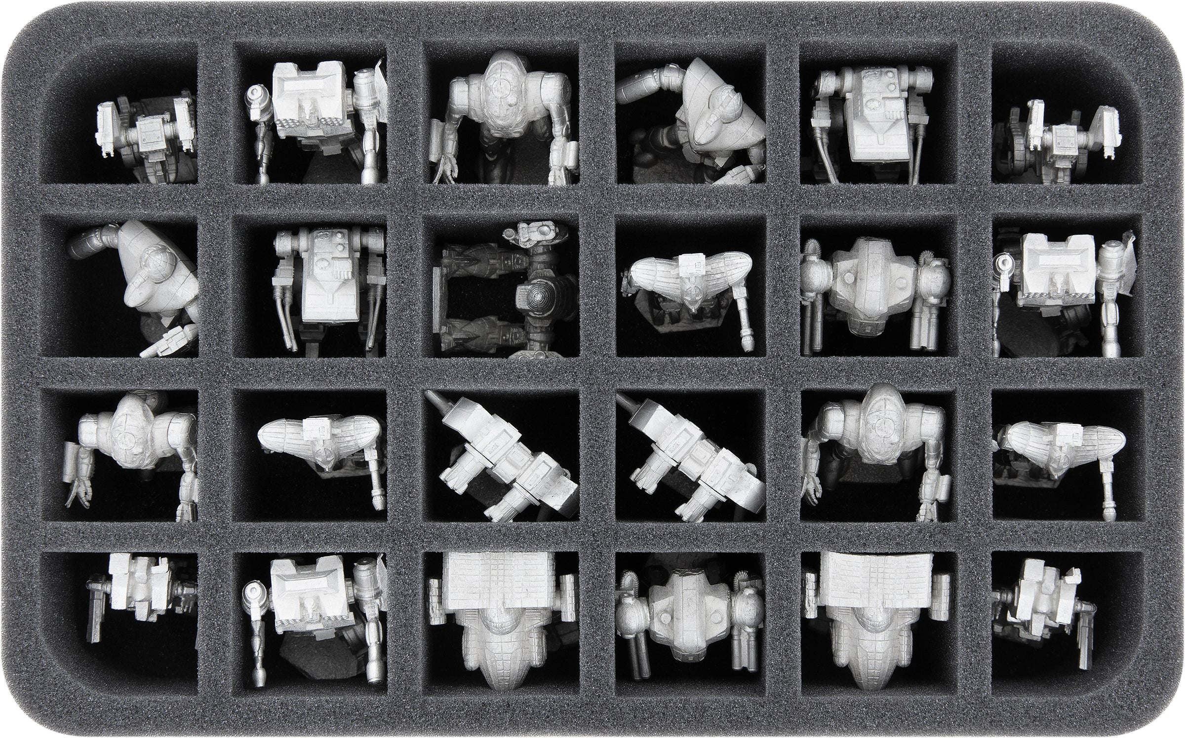The foam tray with 24 compartments is suitable for up to two companies of Mechs including accessories.