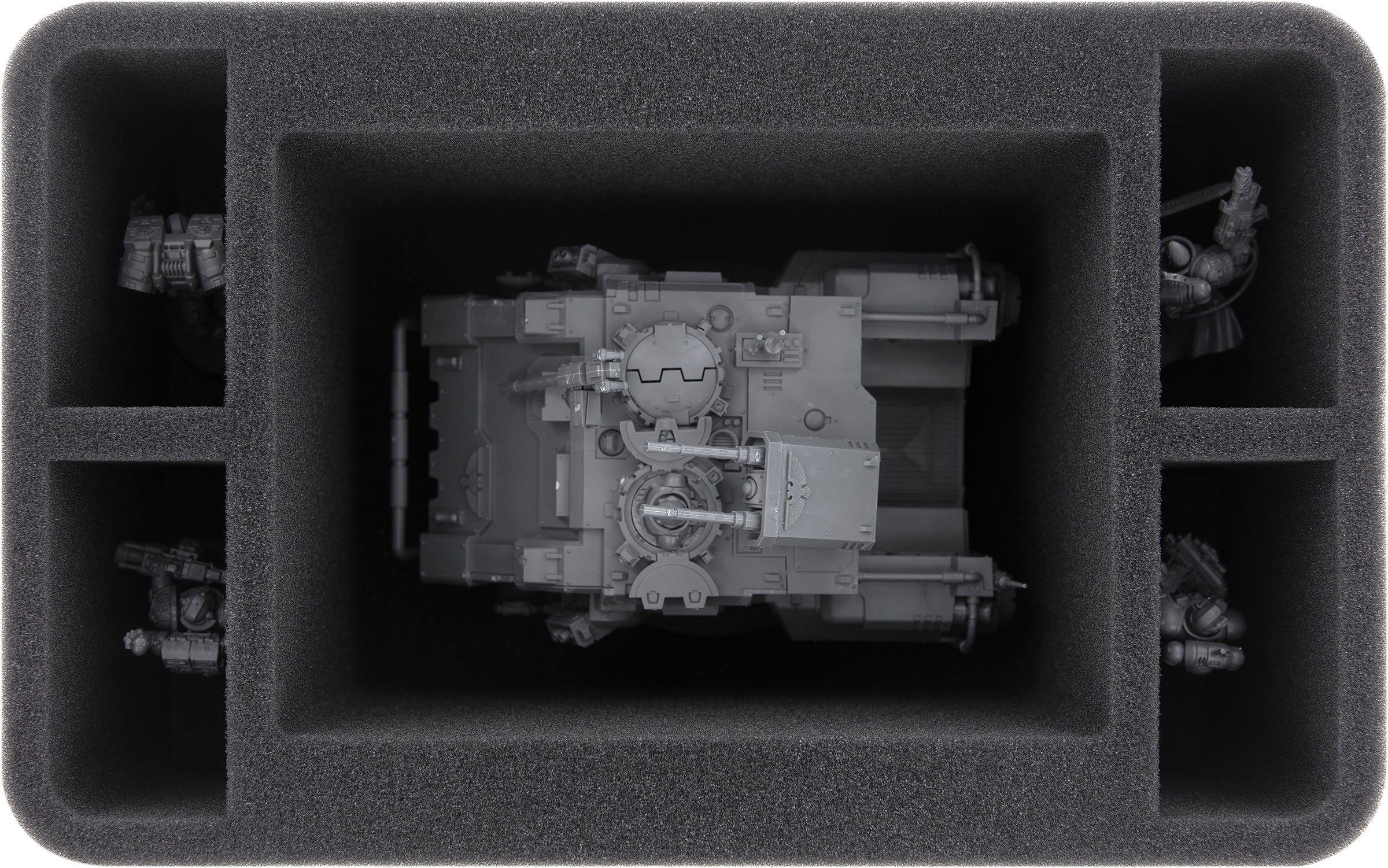 • 1 Half-Size foam tray with 5 compartments for e.g. Primaris-Impulsor, Intercessoren (HS120A006)