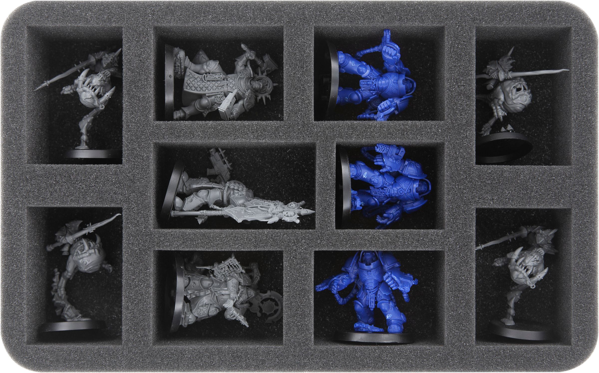 • 1 Half-Size foam tray with 10 compartments for e.g. Primaris Crusader Squad, Sword Brethren, Paladins, Neophyte (HS050WH53)