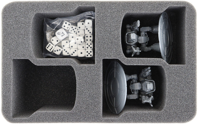 - 1 Half-Size foam tray with 4 miniature-precisely cut compartments for Warhound Titans (HSMEHK085BO)