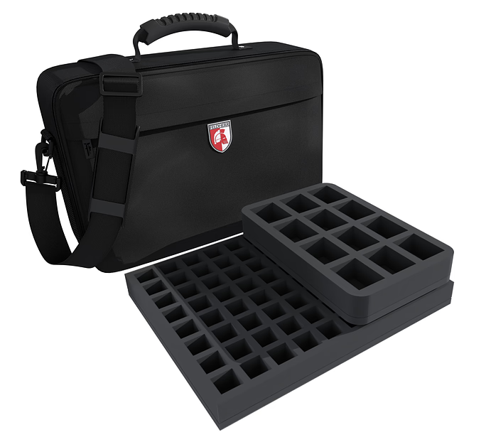 One Full-Size and three Half-Size foam trays ensure all miniatures are neatly and securely stored in the bag. Each figure has its own compartment, preventing them from slipping and colliding during transport. Sensitive details are optimally protected, and the soft foam preserves the colors of your painted models from abrasion and scratches.