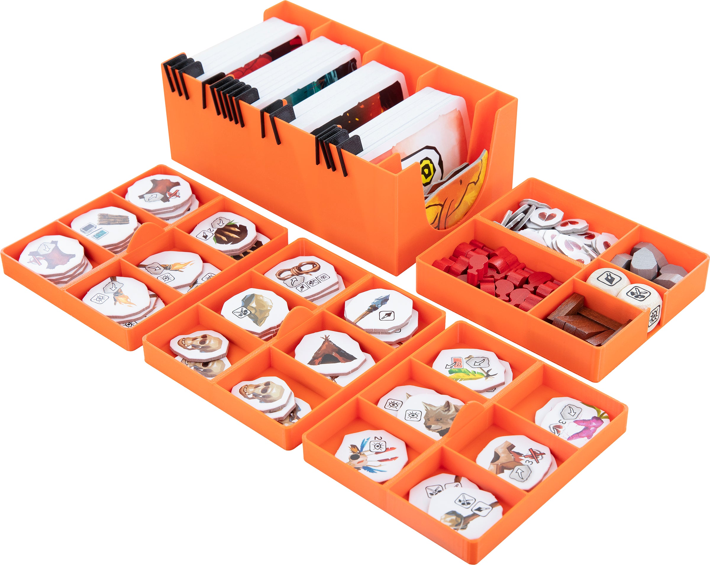 - Provides space for the 40 Resources (20 Food, 12 Wood and 8 Stone), 40 Wound Tokens and 2 Dice