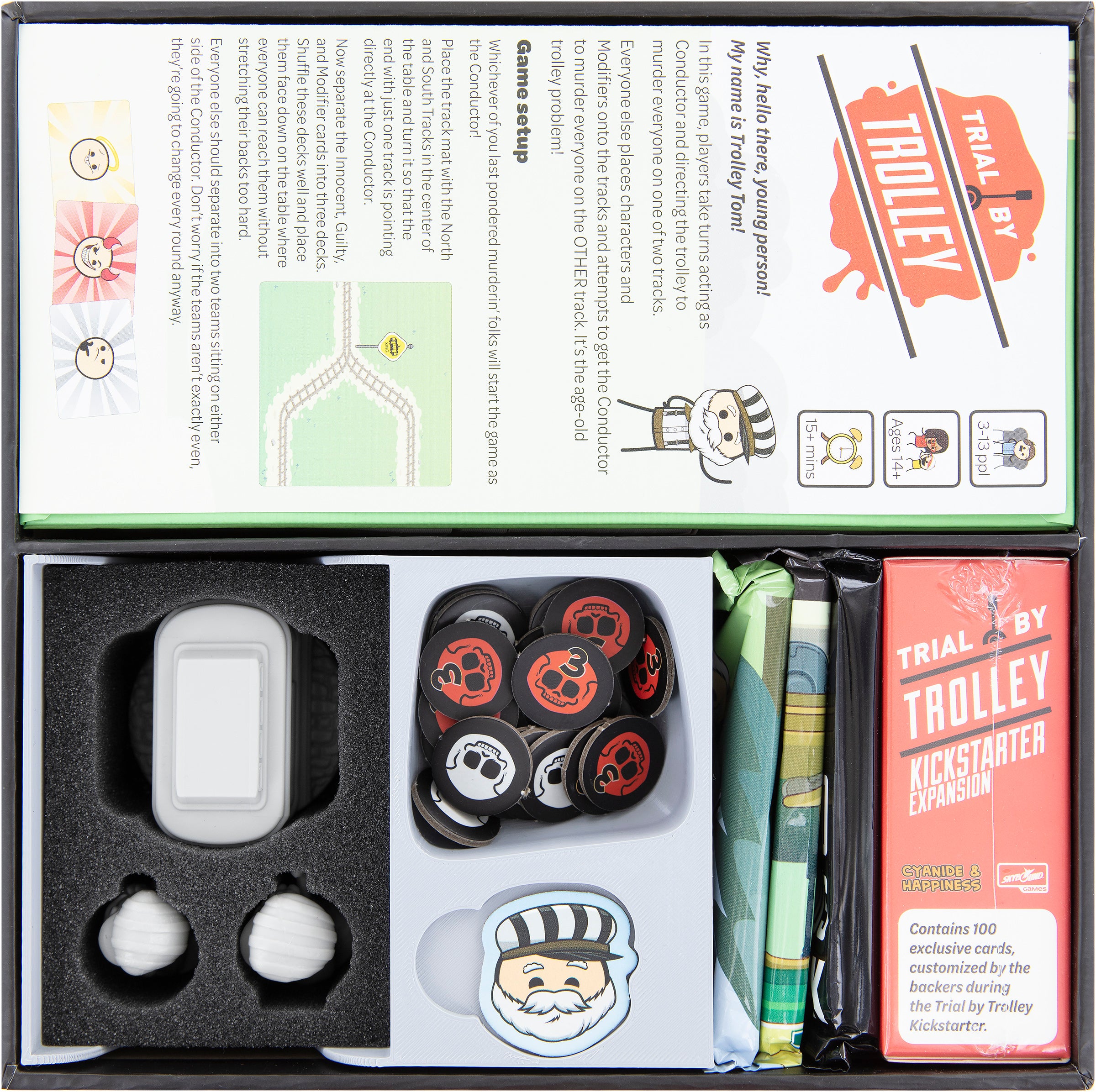 - The Organizer fits into the original game box of the Trial by Trolley: Derailed Edition by Cyanide and Happiness