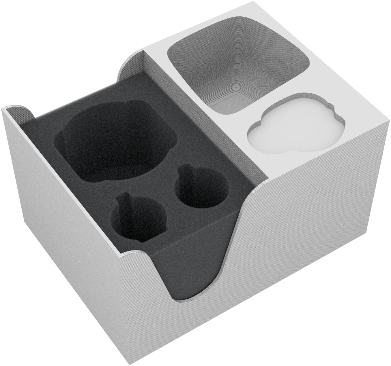 This Organizer-Set protects and organizes at the same time. The funny miniatures are excellently protected from damage thanks to the combination of plastic sorter and foam insert. You can even arrange your Death Tokens.
