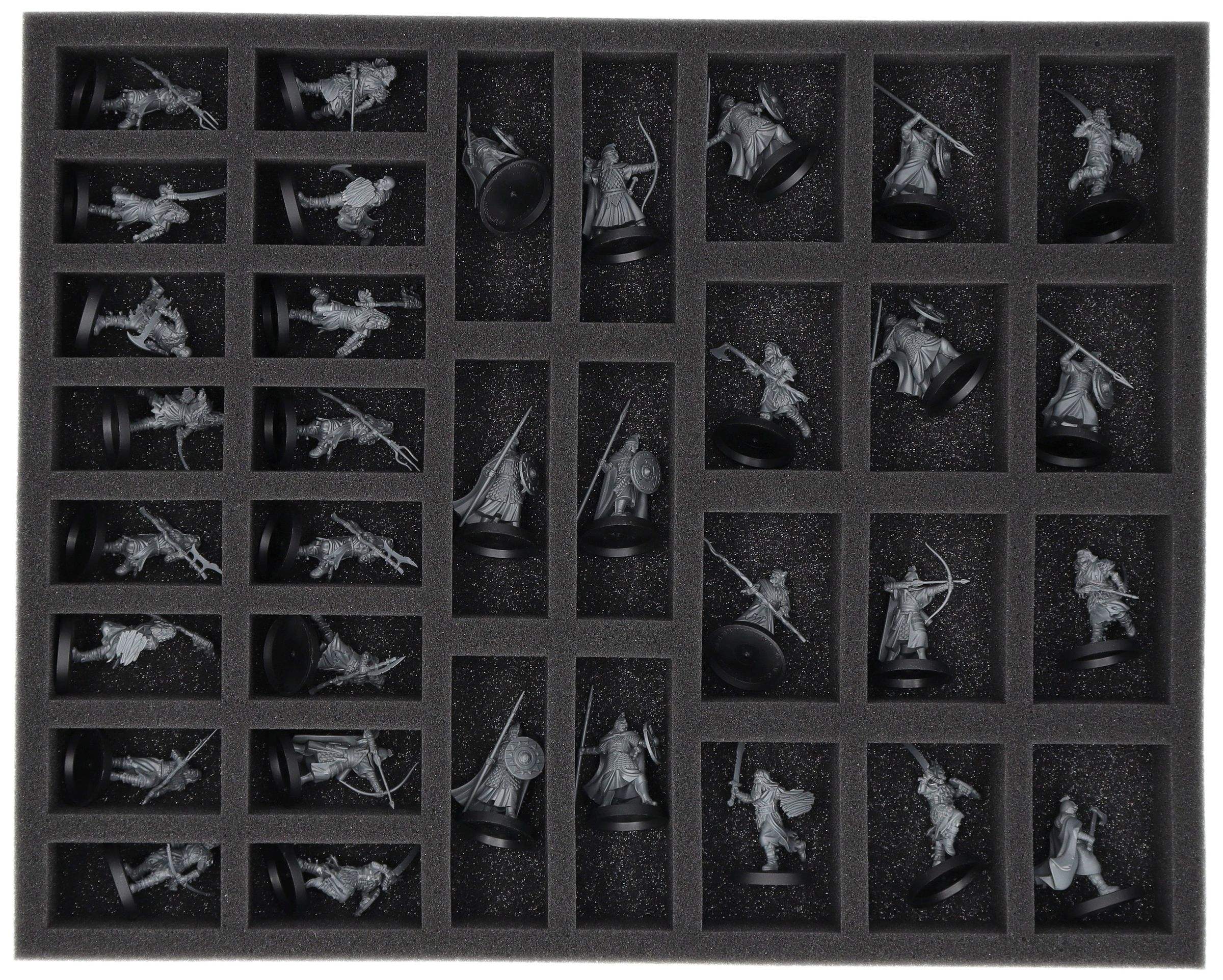 On this Full-Size foam tray you have space for up to 34 miniatures of your Middle-earth Strategy Battle Game. The insert is especially suitable for storing your hero and warrior miniatures of different sizes from "The Lord of the Rings" and "The Hobbit".