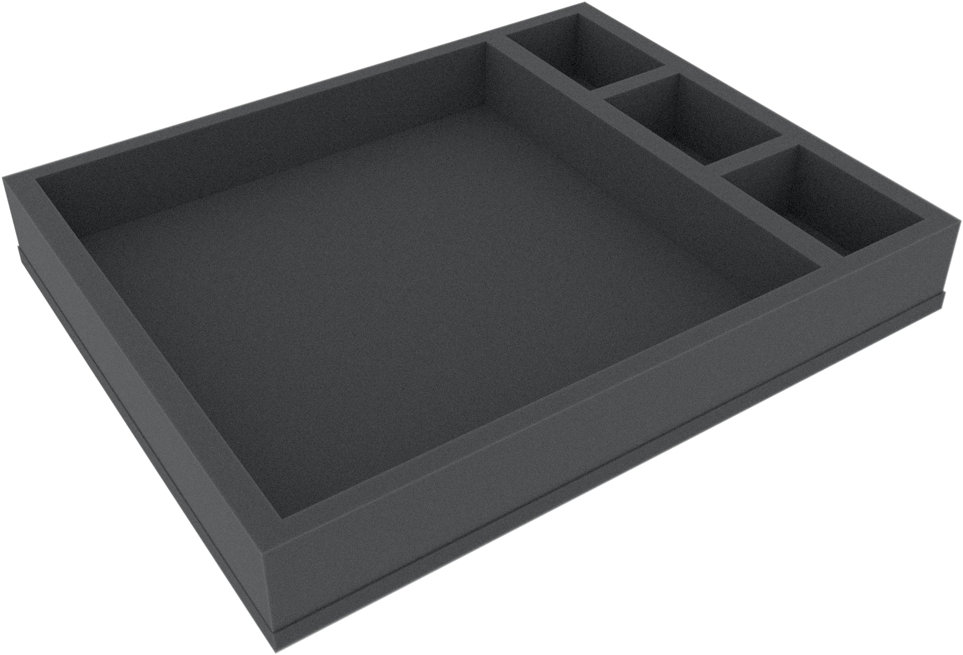 The foam tray has the dimensions: 345 mm x 275 mm x 50 mm total height (40 mm usable height + 10 mm foam base)
