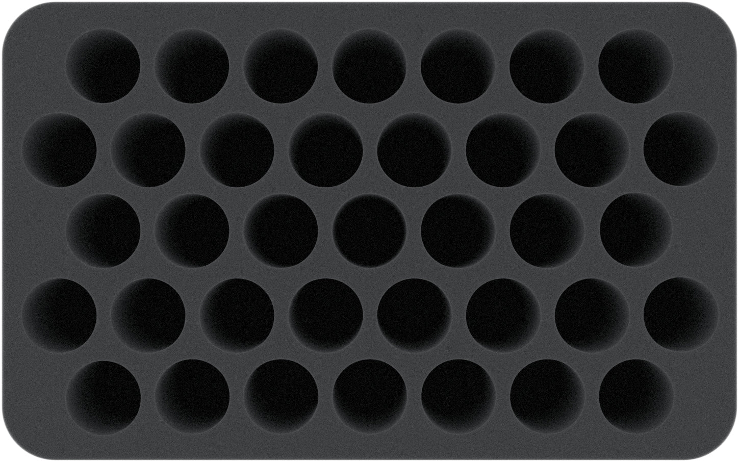 Diese Half-Size-Schaumstoffeinlage ist unterteilt in 37 Fächer gleicher Größe. Die runden Fächer eignen sich besonders gut zum Schutz von kleinen Figuren für verschiedene Brettspiele und Tabletop-Systeme.