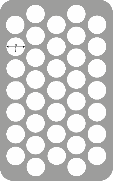- Jedes der 37 Fächer hat einen Durchmesser von 28 mm und ist 60 mm tief.