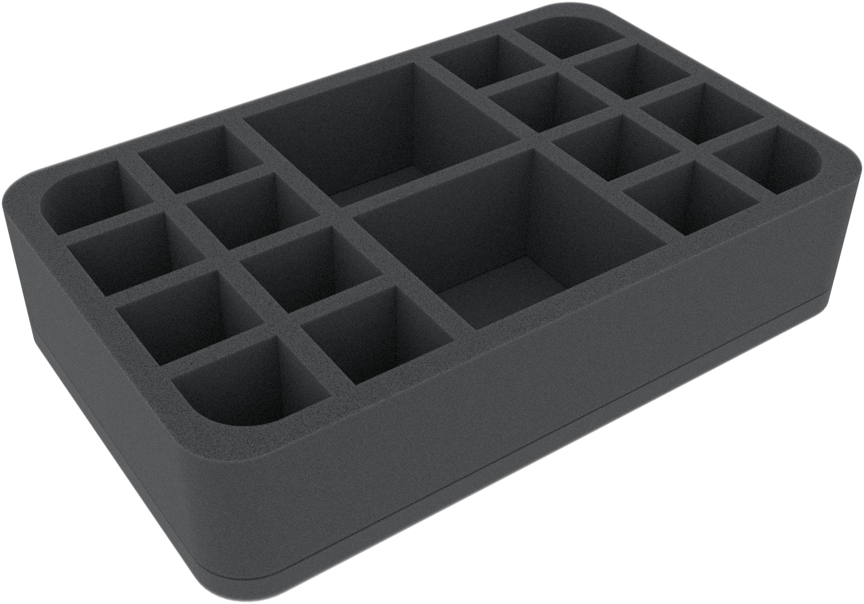 This foam tray has 2 large and 16 small compartments. It is therefore well suited for mixed miniature sets, with large and small figures.