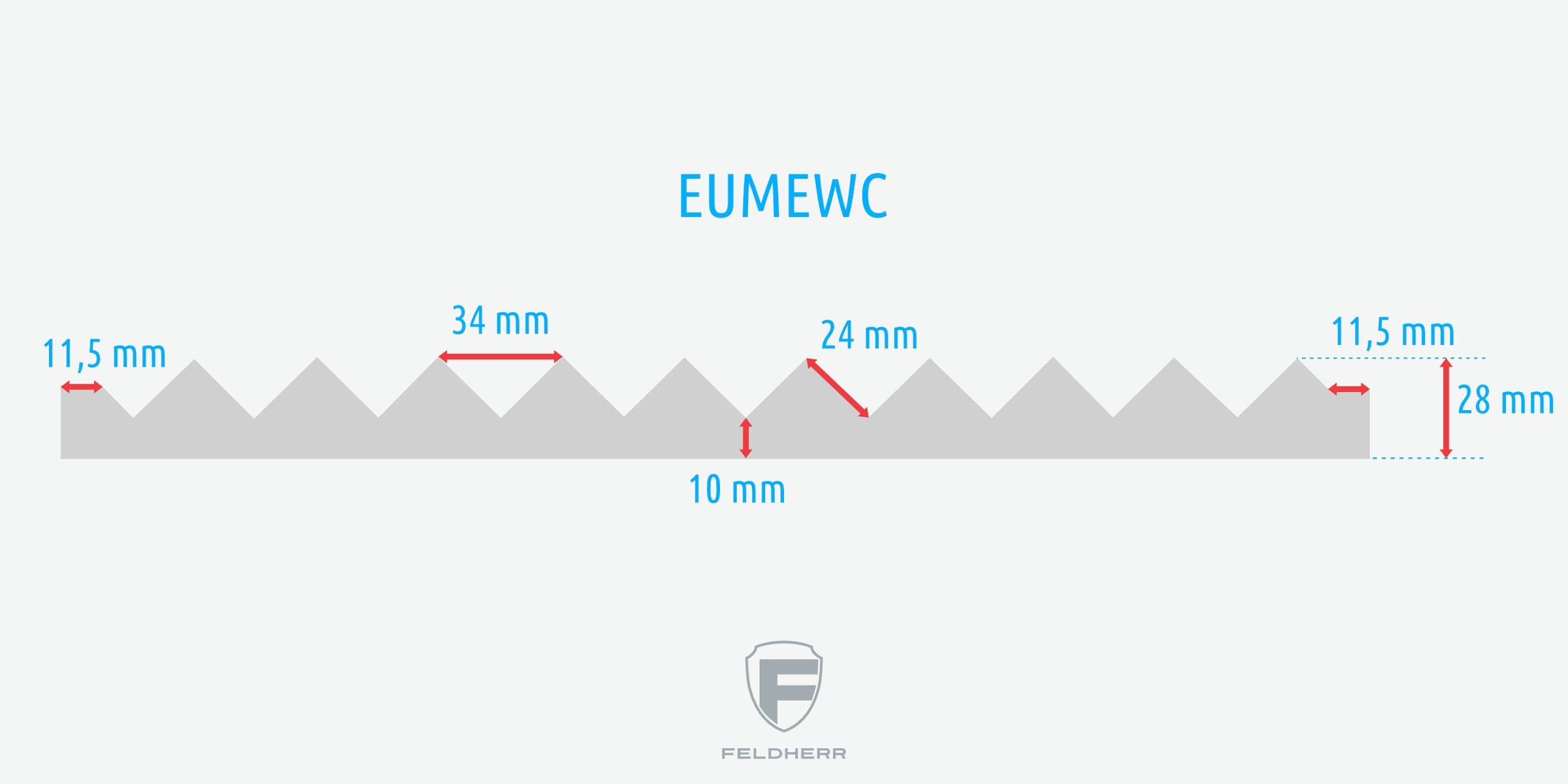 - bottom to bottom of the valley approx. 10 mm