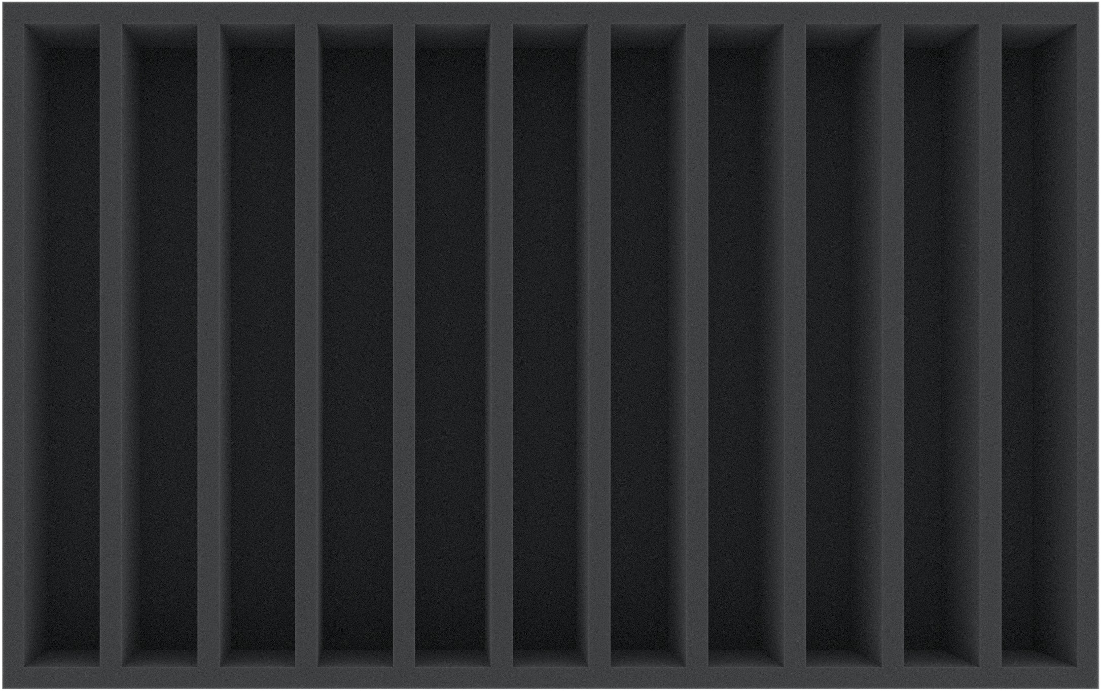 Universal foam insert with 11 long compartments, each 38 mm wide.