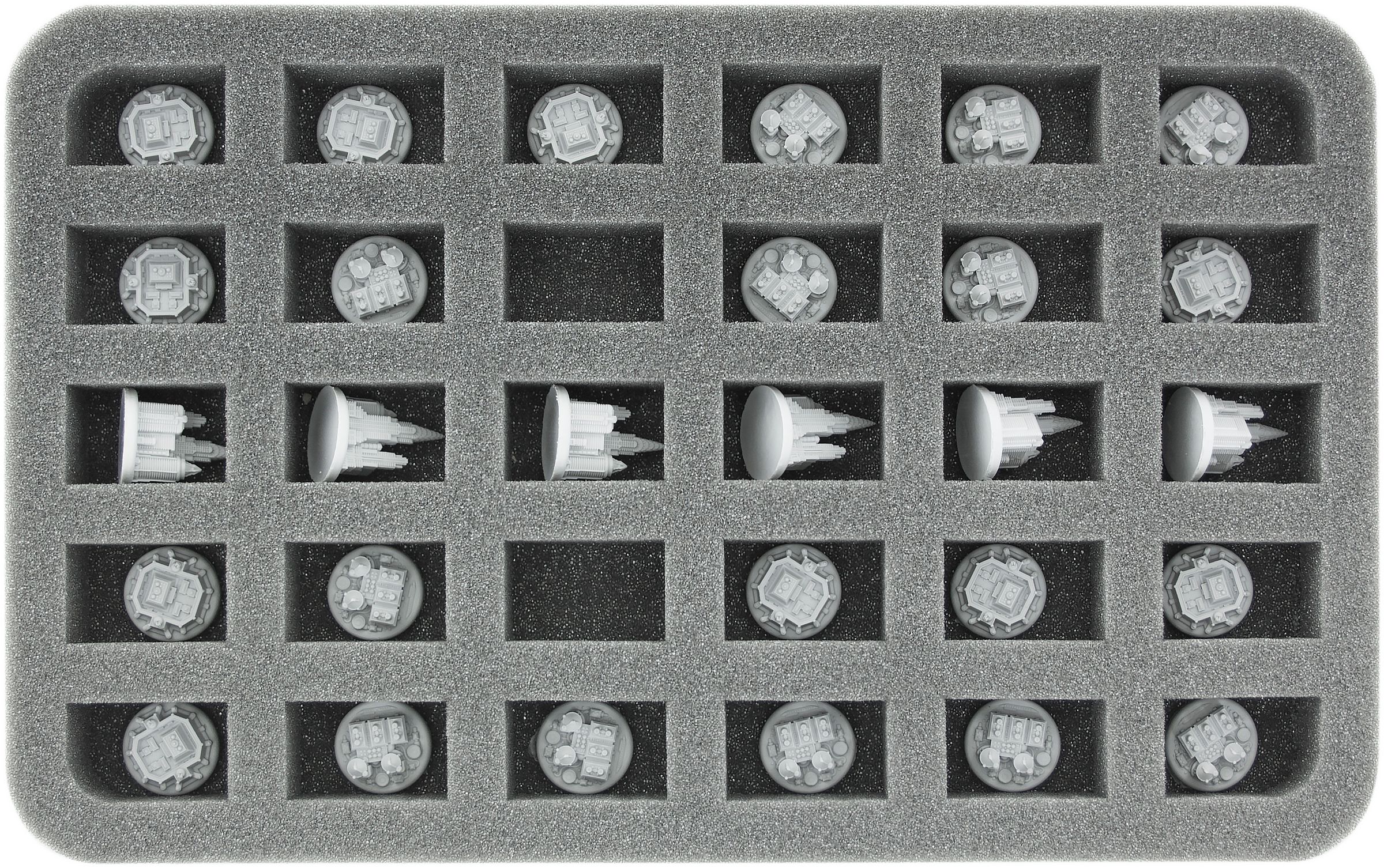 HS030A003 30 mm foam tray for miniatures in scale 1:100 (15 mm) – 30 compartments