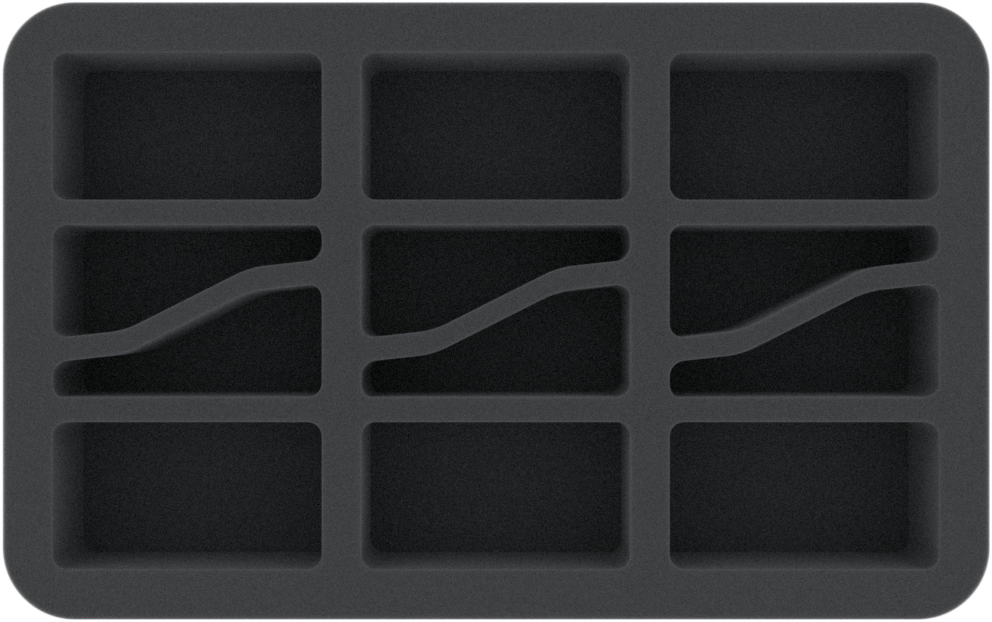 This Feldherr foam tray has 12 compartments for the clear and safe storage of wargaming miniatures in scale 1:100 (15 mm), e. g. miniatures of the games "Flames of War" or “Dropzone Commander".