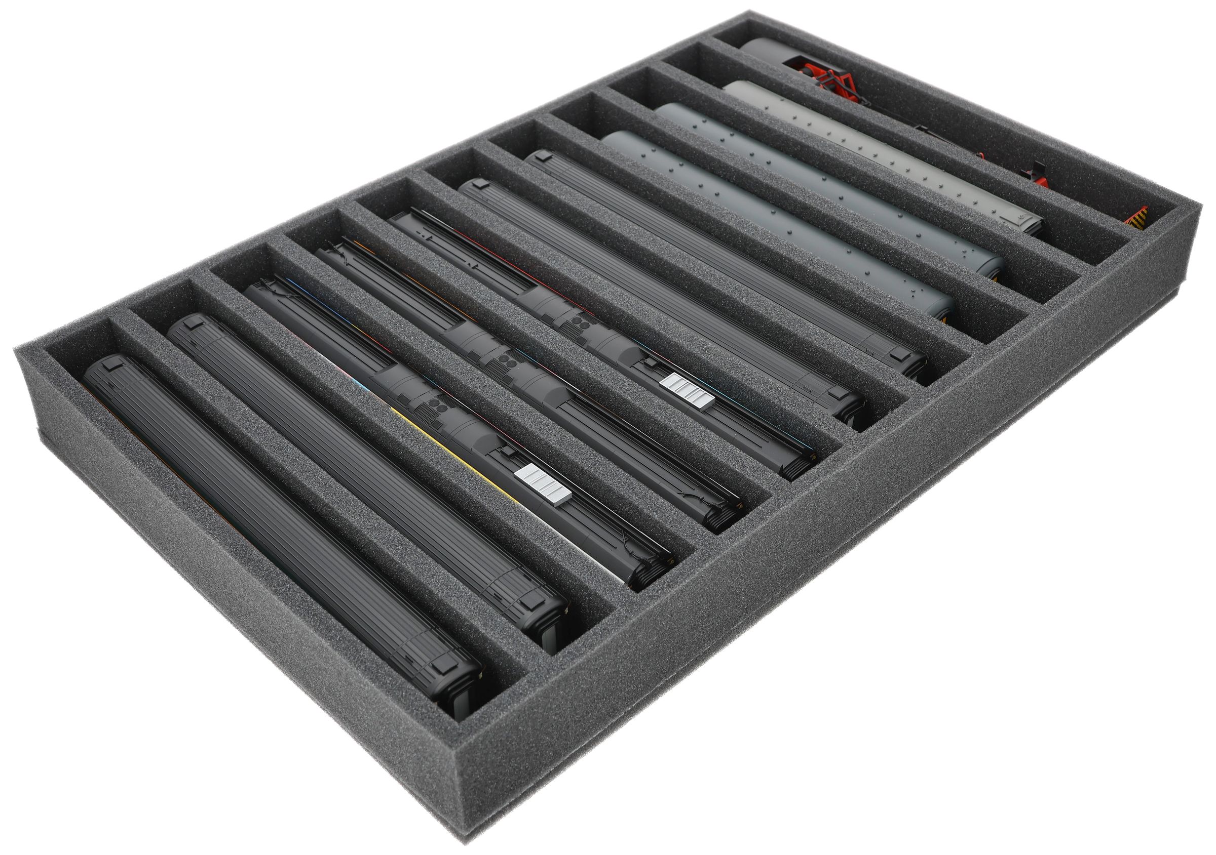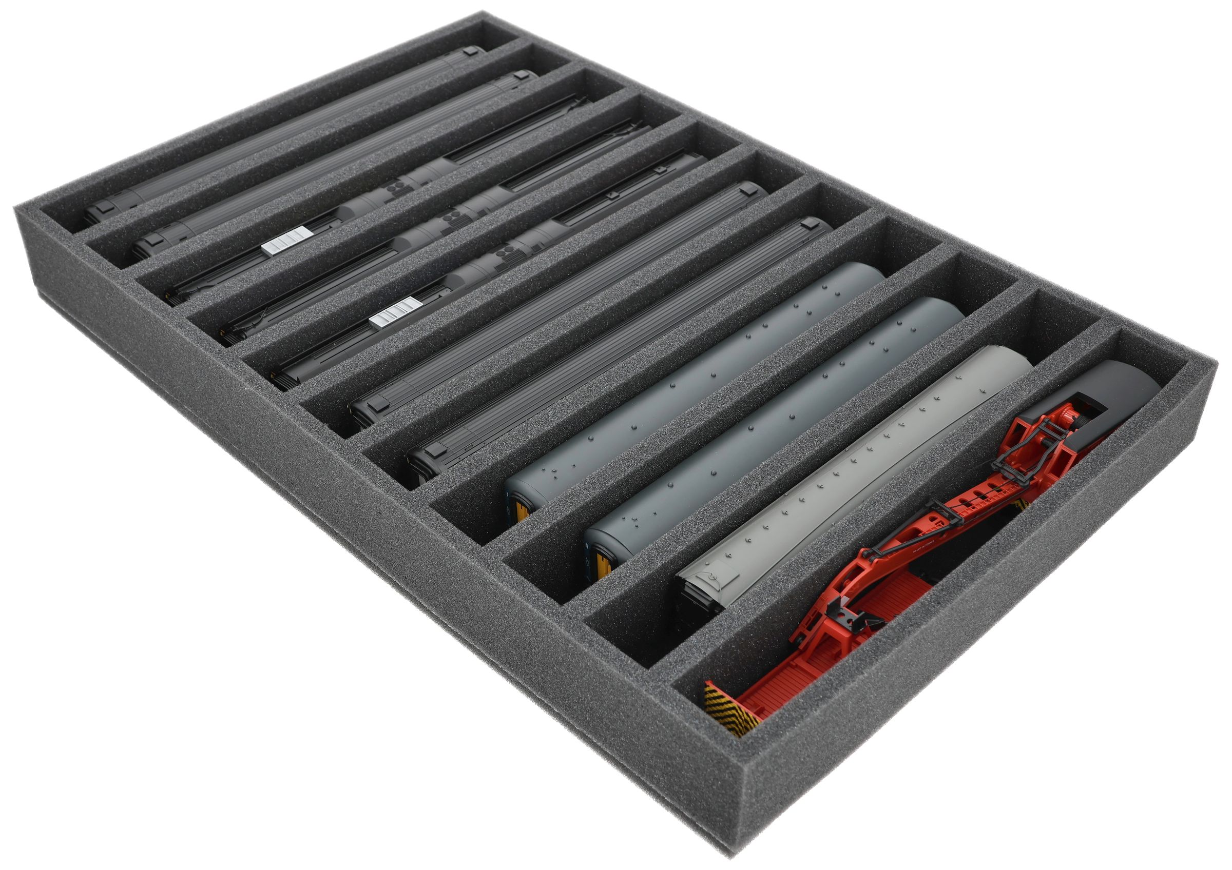 Stored properly and transported safely – With this Feldherr Double-Size foam inlay for model railways in 00 Gauge your models are safe.