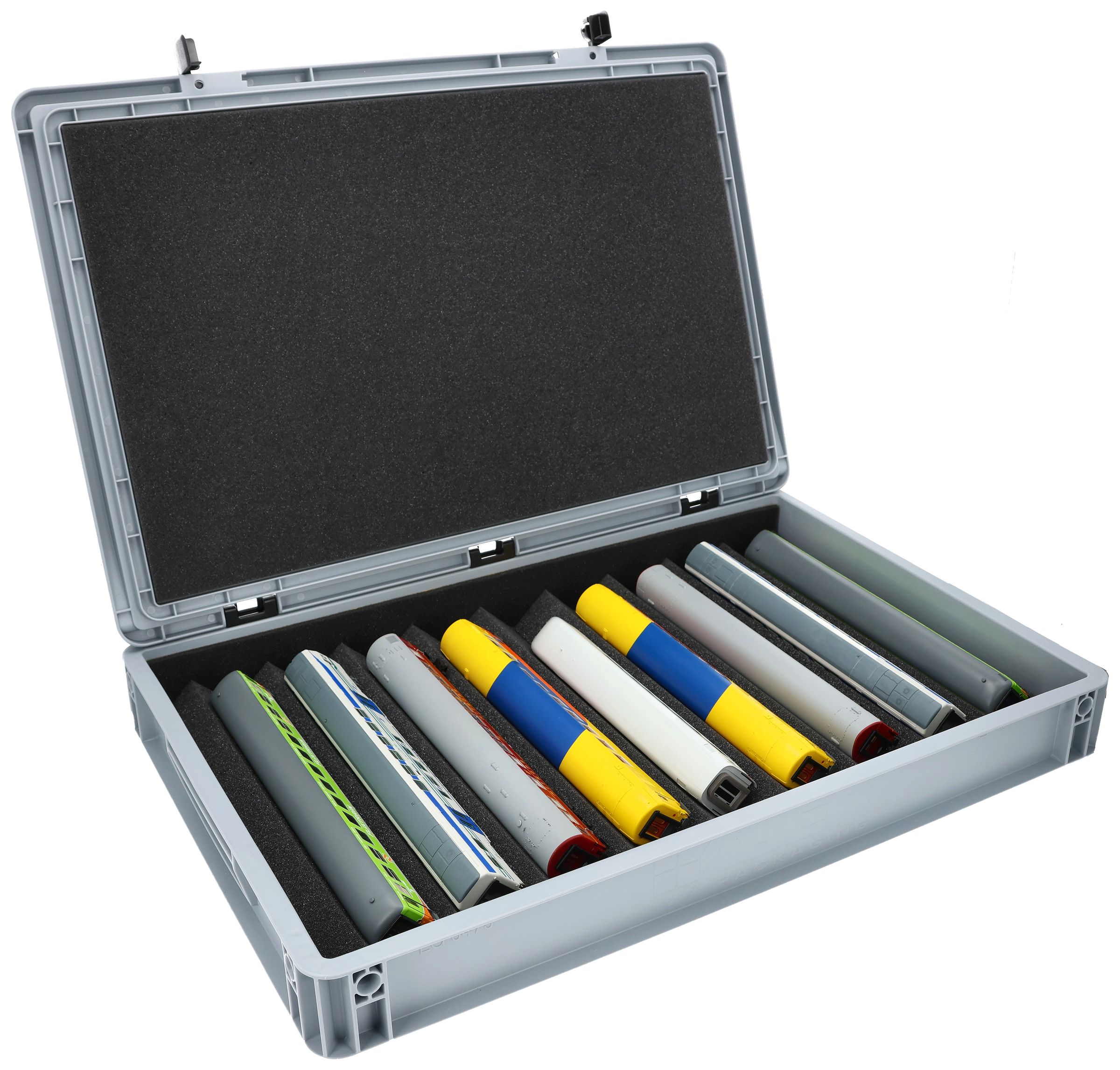 Stored properly, presented clearly and transported safely - The all-round foam inlay for model railways in H0 gauge in the solid Eurobox.